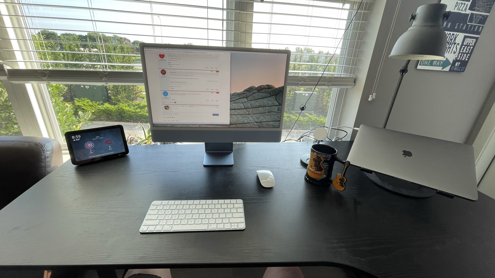 Love the coffee cup!So far I am loving my 24" blue iMac. I've been checking periodically online to see what is available. Found a blue, 1 TB HD with 16 GB RAM for local pickup, so I snagged it. It's the same specs as my 13" MBP. I traded in my 2018 15" MBP for the iMac. The last iMac I owned was a G5. It's kind of nice having a desktop againView attachment 1801887.
