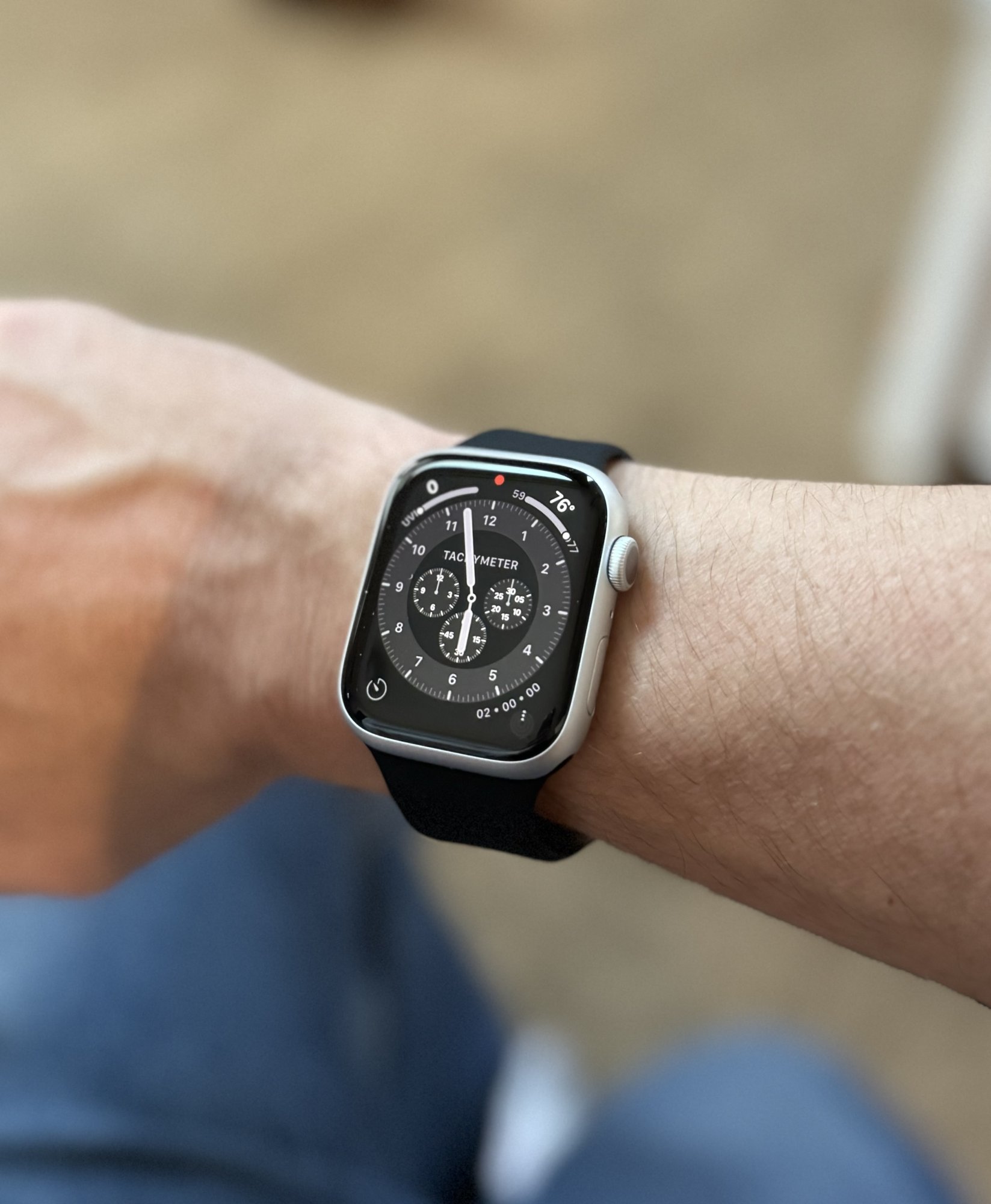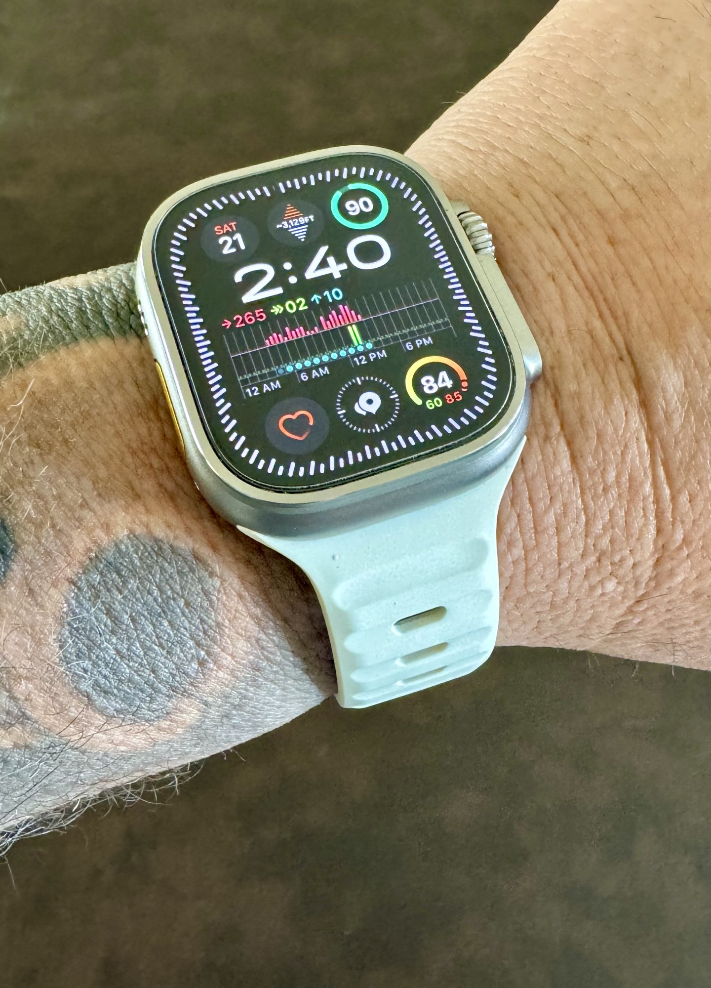 This one-of-a-kind Apple Watch was intended as a 50th birthday gift to Jony Ive from the Apple engineering team and featured a specially engraved pin combining his initials, J and I, with the number 50. This band also uniquely features space black buttons on the underside of the connectors, unlike any retail version of the cloud sport band!