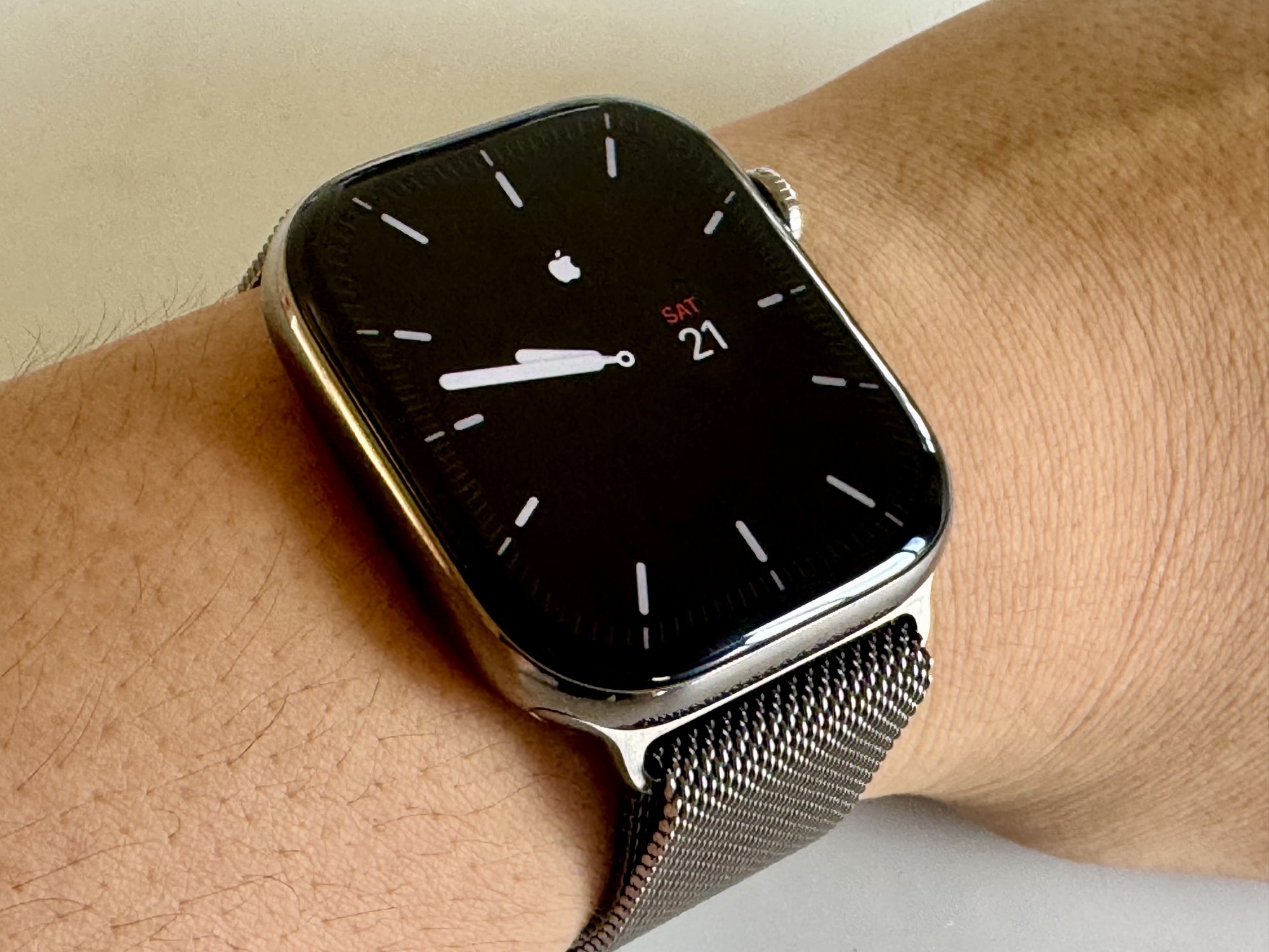 When side-by-side with the Series 7, it makes the Series 7 look 'boxy' in comparison (for want of a better term). The Series 7 sits more flush with your wrist which is nice.