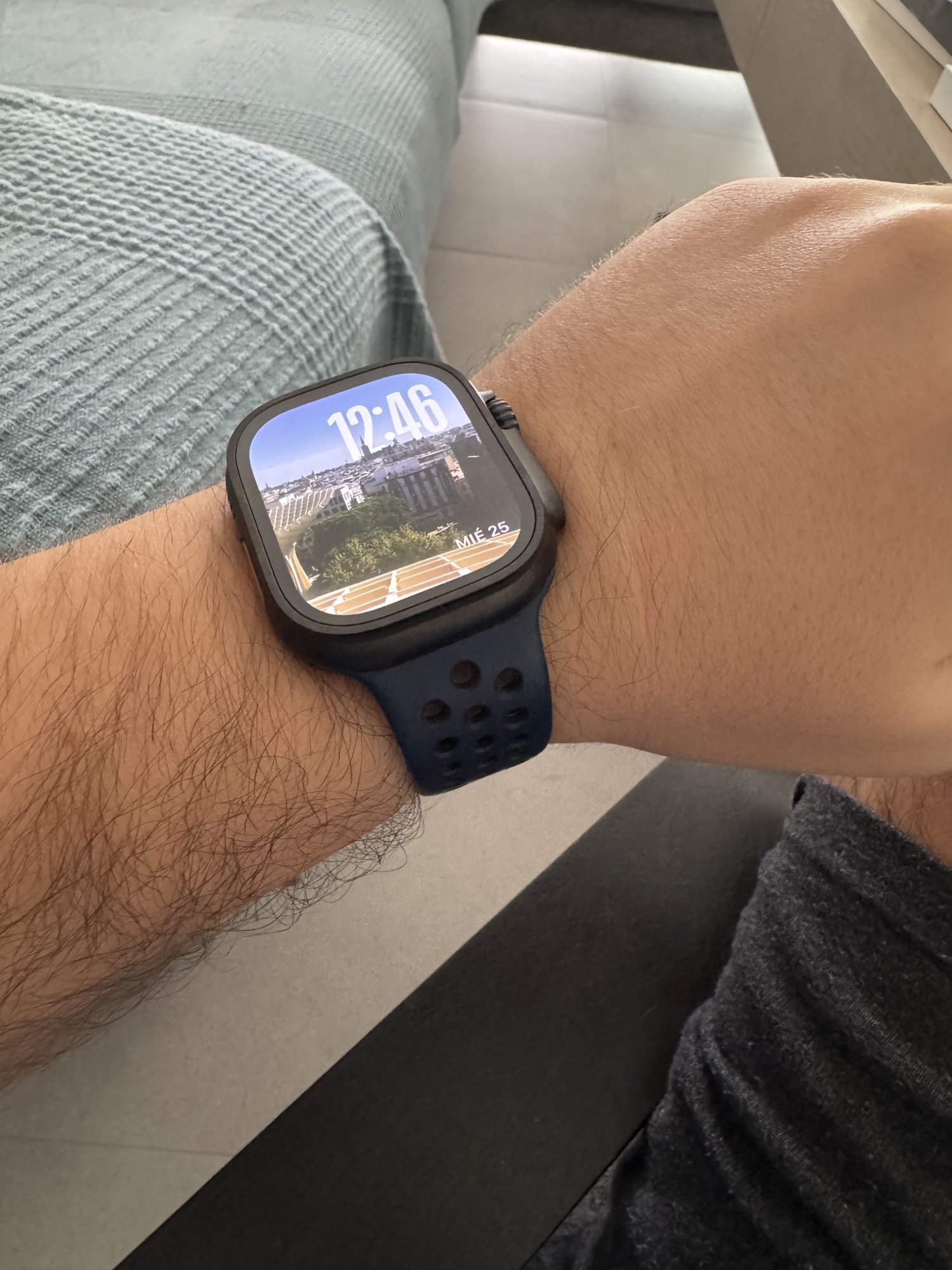After 10 years trying different apple watch bands and after trying all ultra specific bands, there is no other (for me) like Nike Sport band for everyday use without any worries about sweat, smell, water, wine, oil, etc. it’s as comfortable as possible and you can clean it easily to maintain it like first day. Here Black AW2 + Blue/Obsidian Nike sport band combo, an stellar one. What a shame that the watch is too bulky for me…in some positions of my hand when I move the wrist I can feel the crown and its metal surroundings stuck in the skin, being a painful experience. I hope black S10 will be the perfect one.