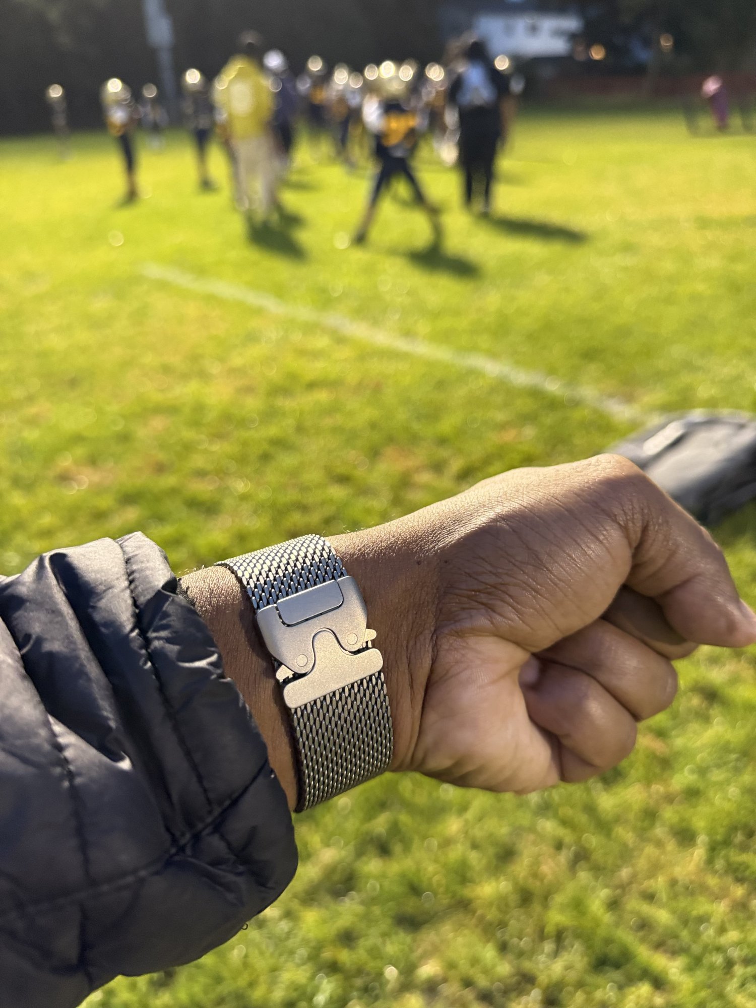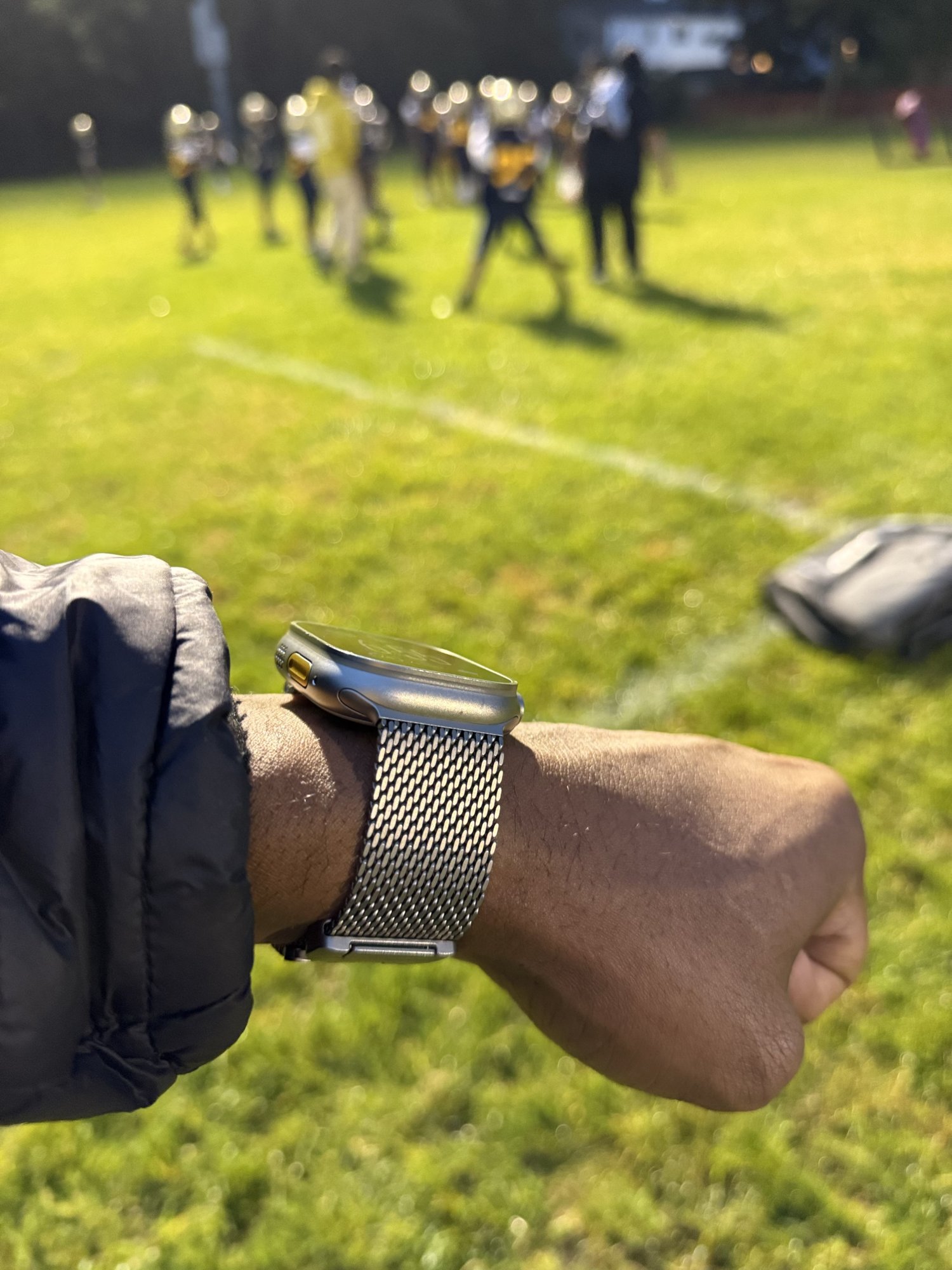 🔥 shots of the Milanese loop in titanium! Ultra 2 in black titanium i never seen pics of it before… anyone have it?Took a moment to admire my new titanium Milanese loop during my son’s football practice lol