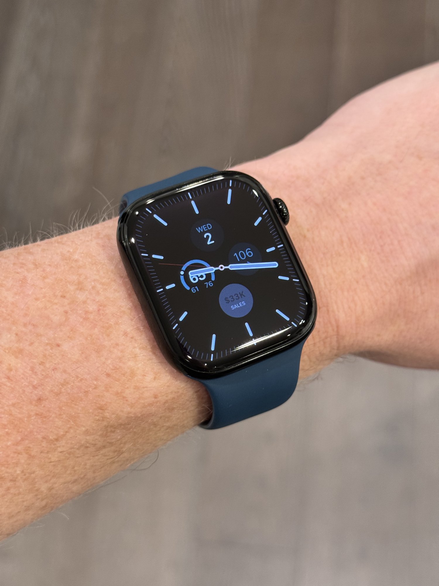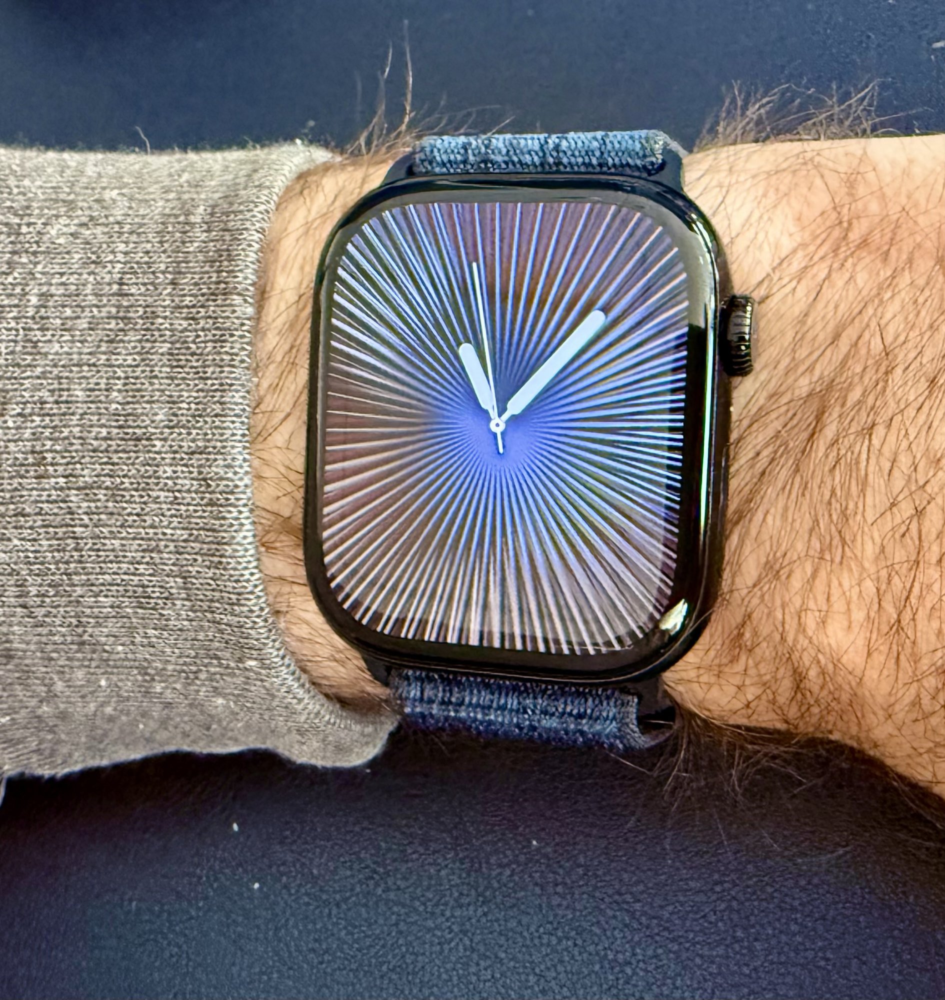 I have the same combo, that sport loop always looks way bluer in pics than in person I find.My Jet Black Series 10 with blue/black Nike sport loop. Really enjoying this watch.