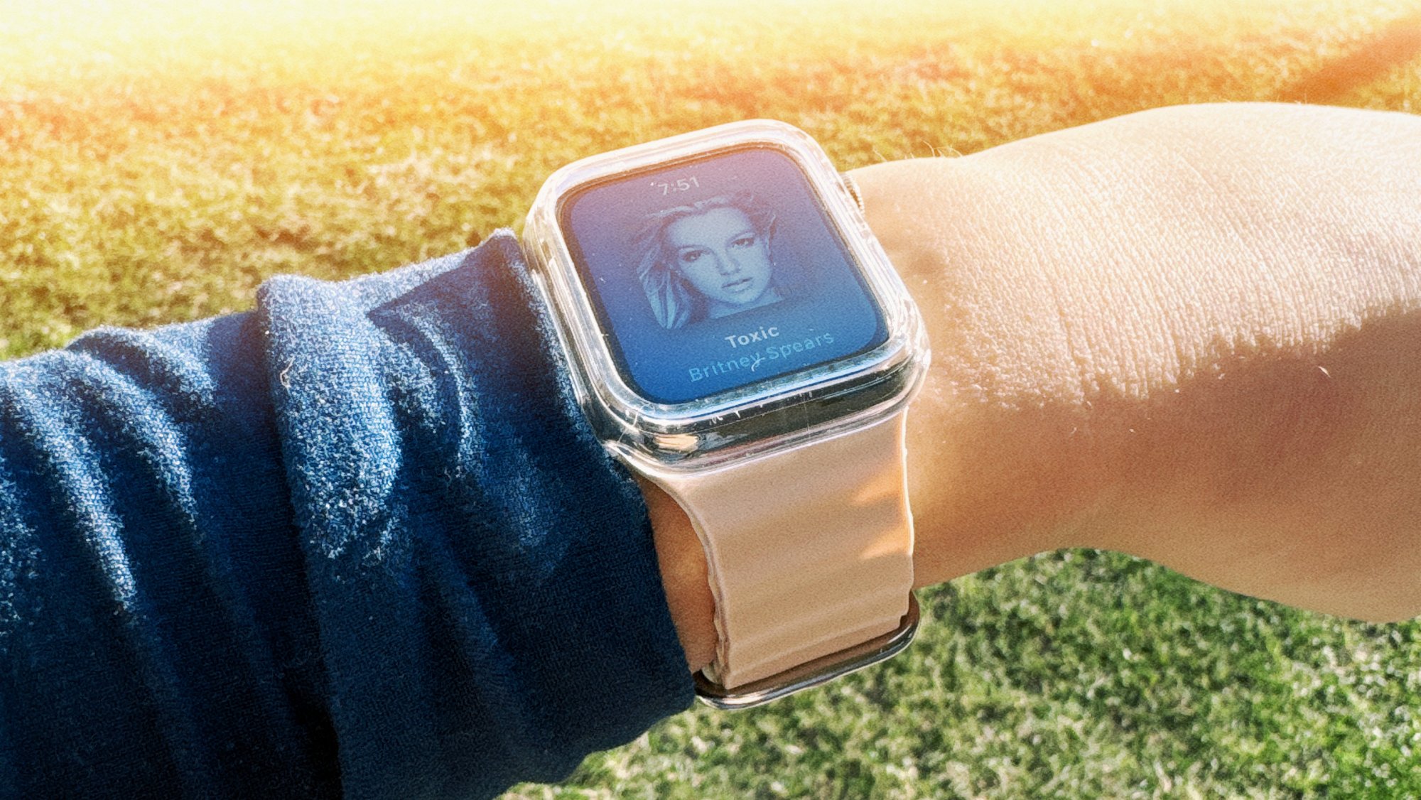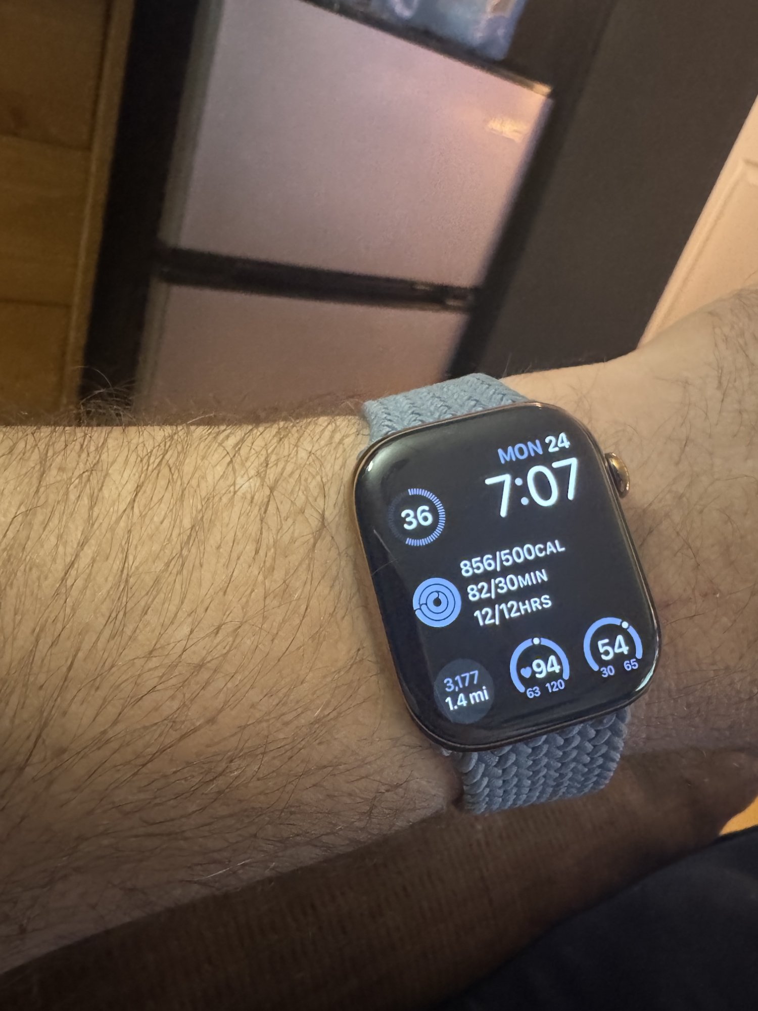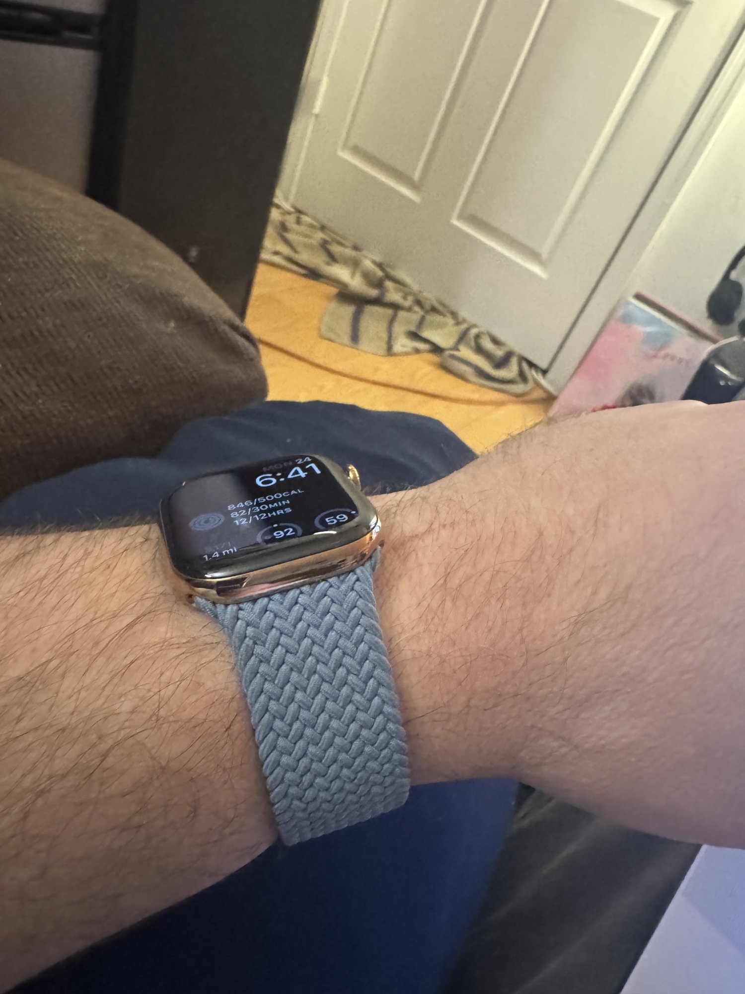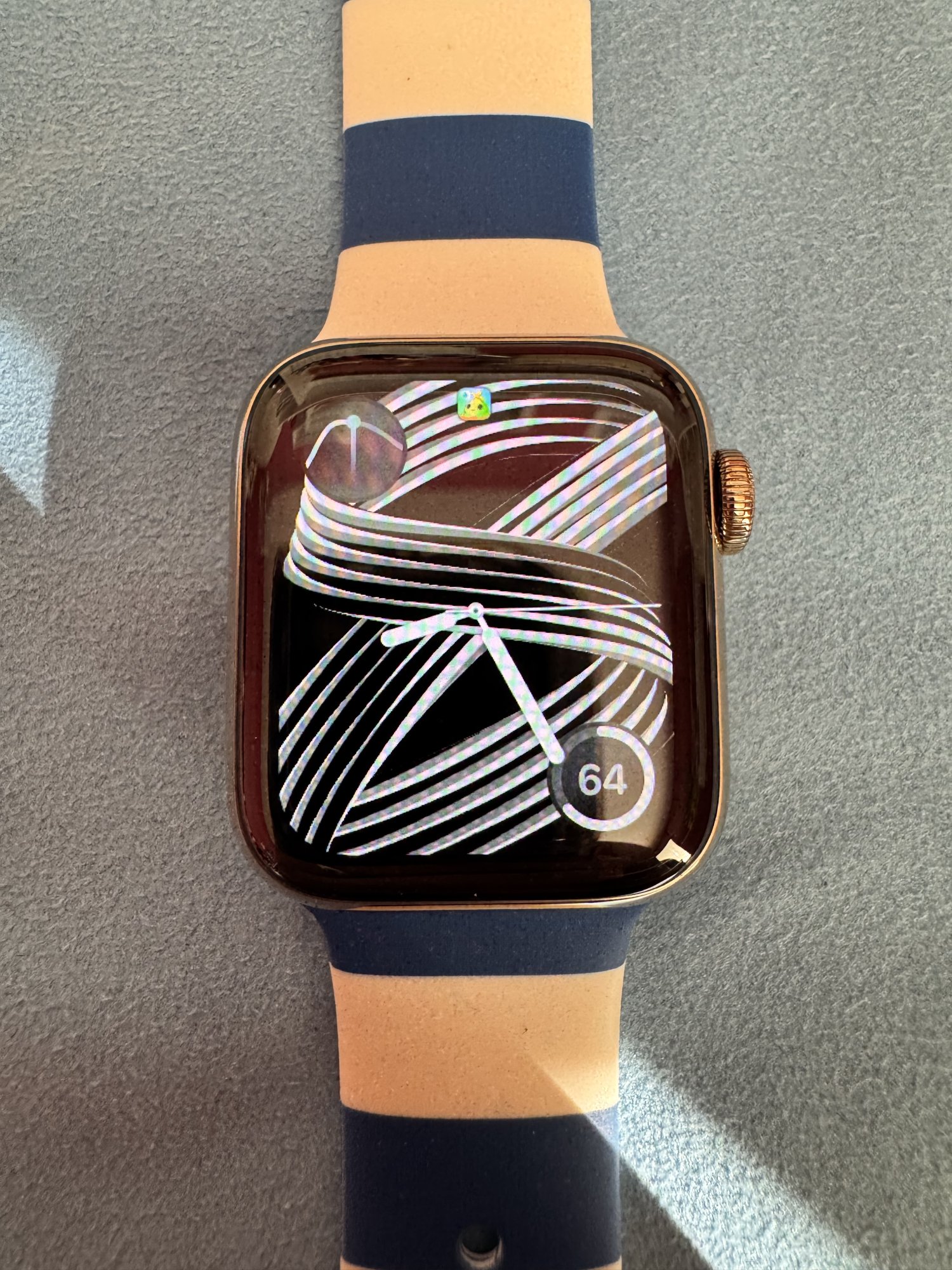 Here’s another sunlit shot of my Apple Watch! The case makes it a little bit like if a gold stainless steel Apple Watch Ultra would exist.