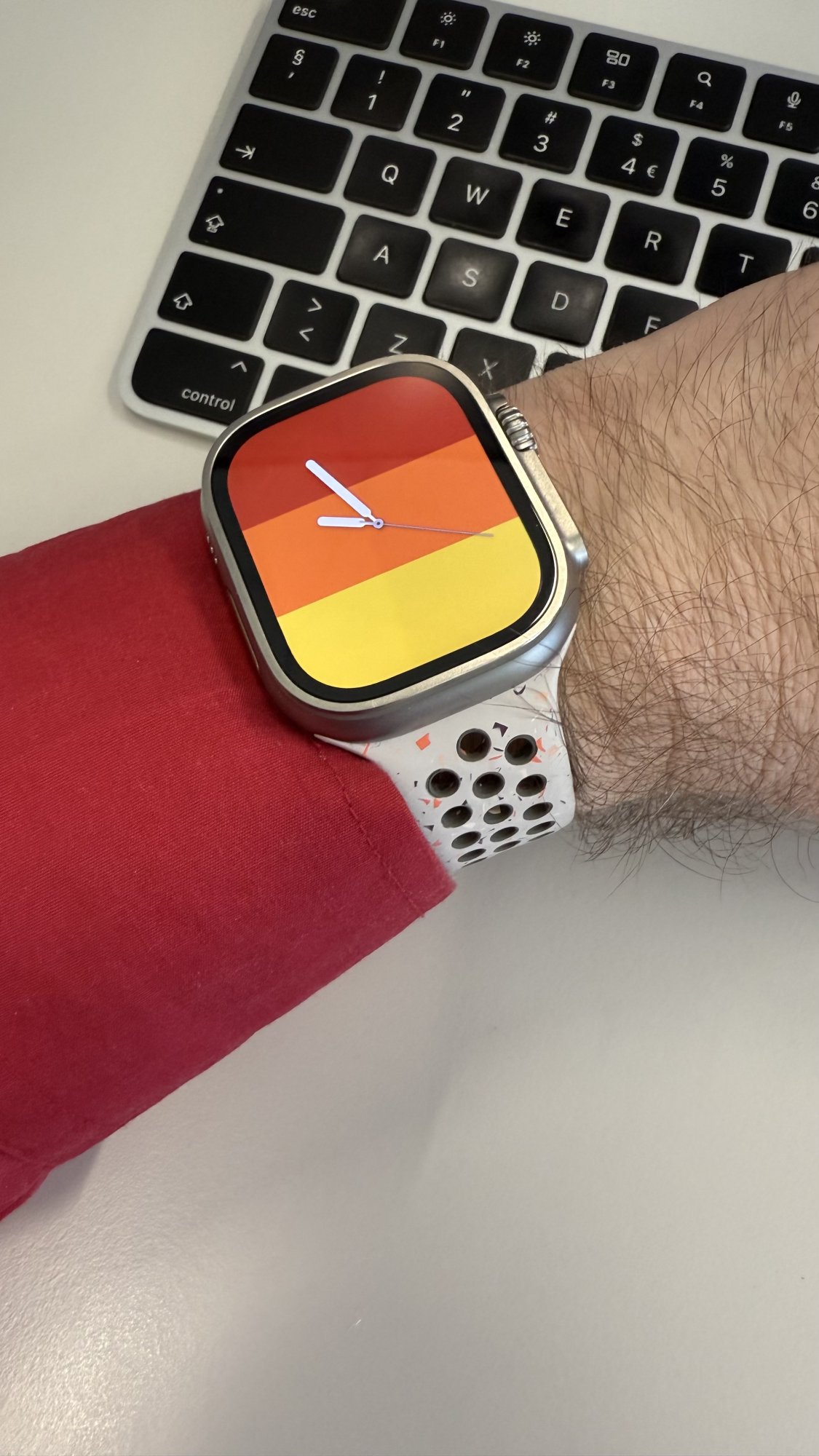 Love that orange 🍊 striped face it looks lovely and it’s like a sunset. 🌅Ultra 1 with Nike Sport Band Desert Stone and Stripes watch face