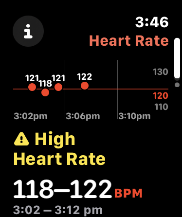 Thanks, Rich.I have occasional bouts of anxiety and just the other day I got a warning "Your pulse went over 120 when you were seemingly at rest" (or something like that). And legitimately I was just standing there but sorta freaking out about something.