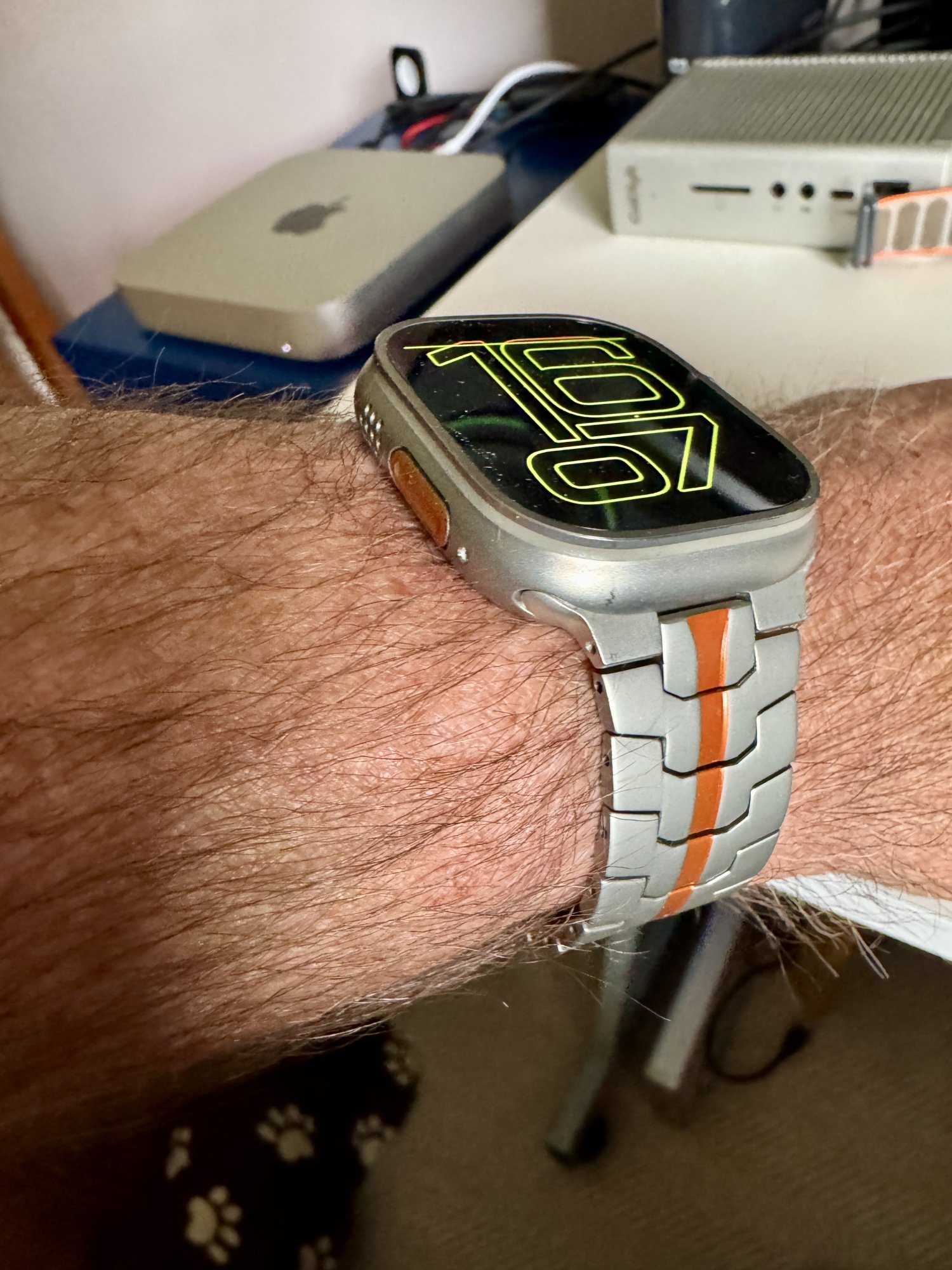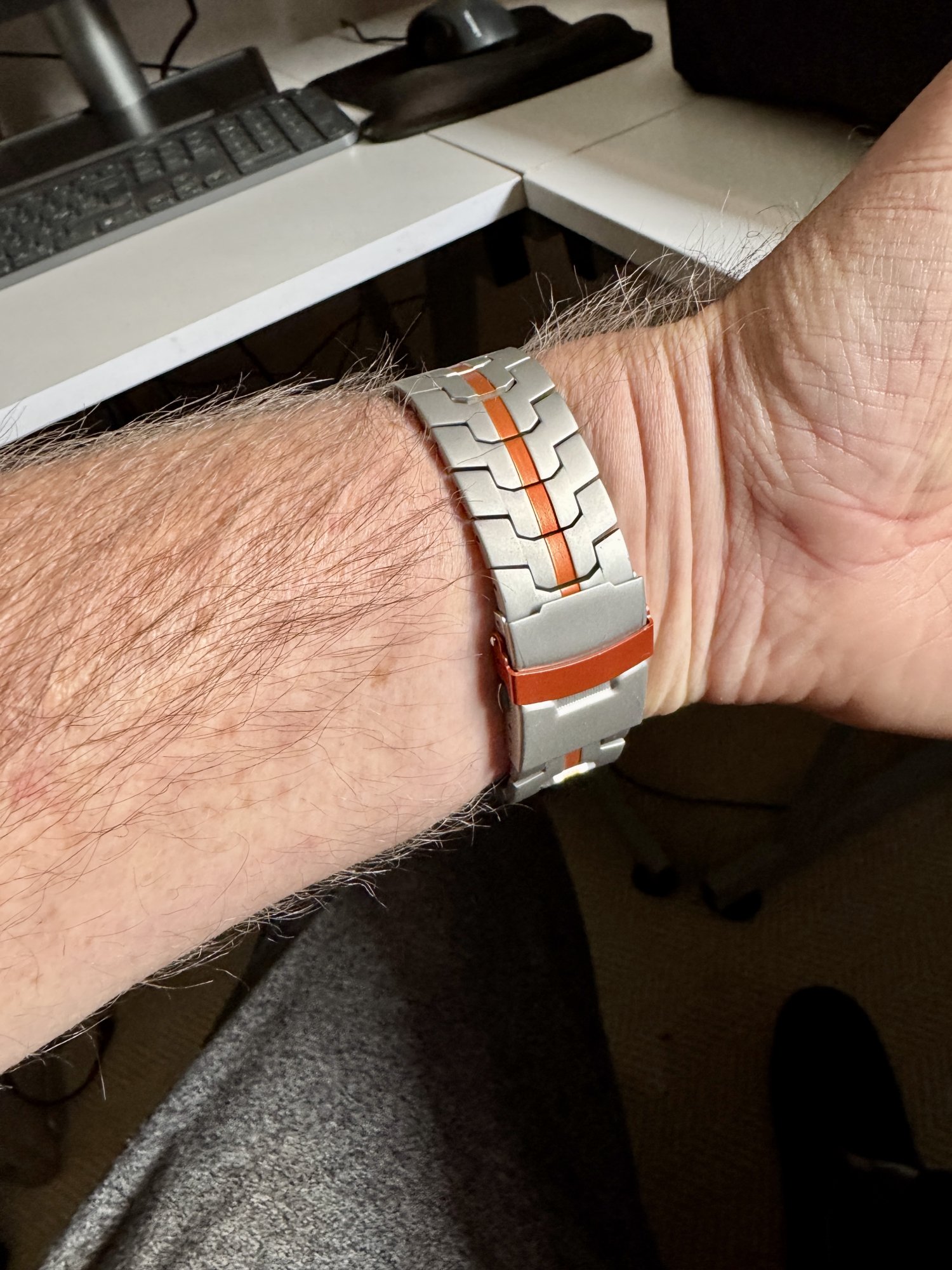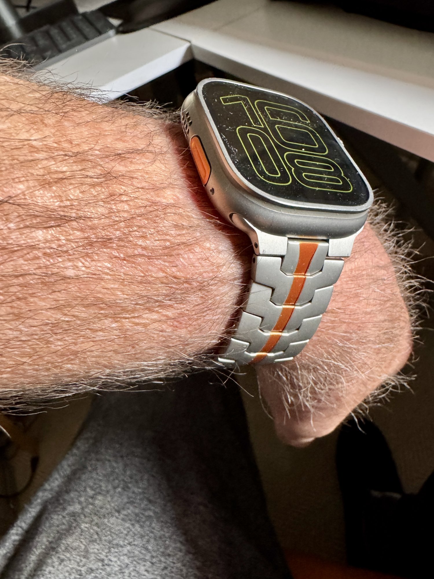 Looks nice, a black and orange bracelet is well suited for black Apple Watch Ultra users too!I do like my AliExpress band with my AWU2 - perfect colour match for the case and button -