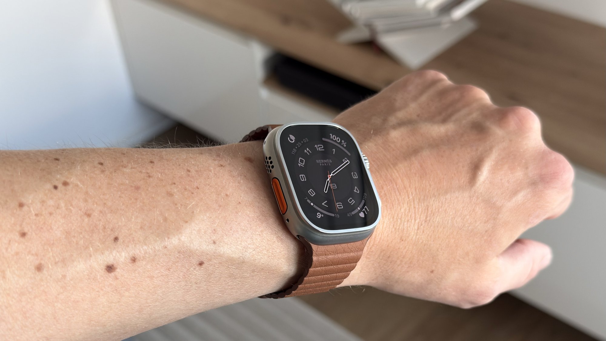 That’s a great Apple Watch Ultra Hermes watch face! Apple should release more faces for Hermes ultras.That’s the AOD look - recognizable because the numbers are intertwined in AOD.
