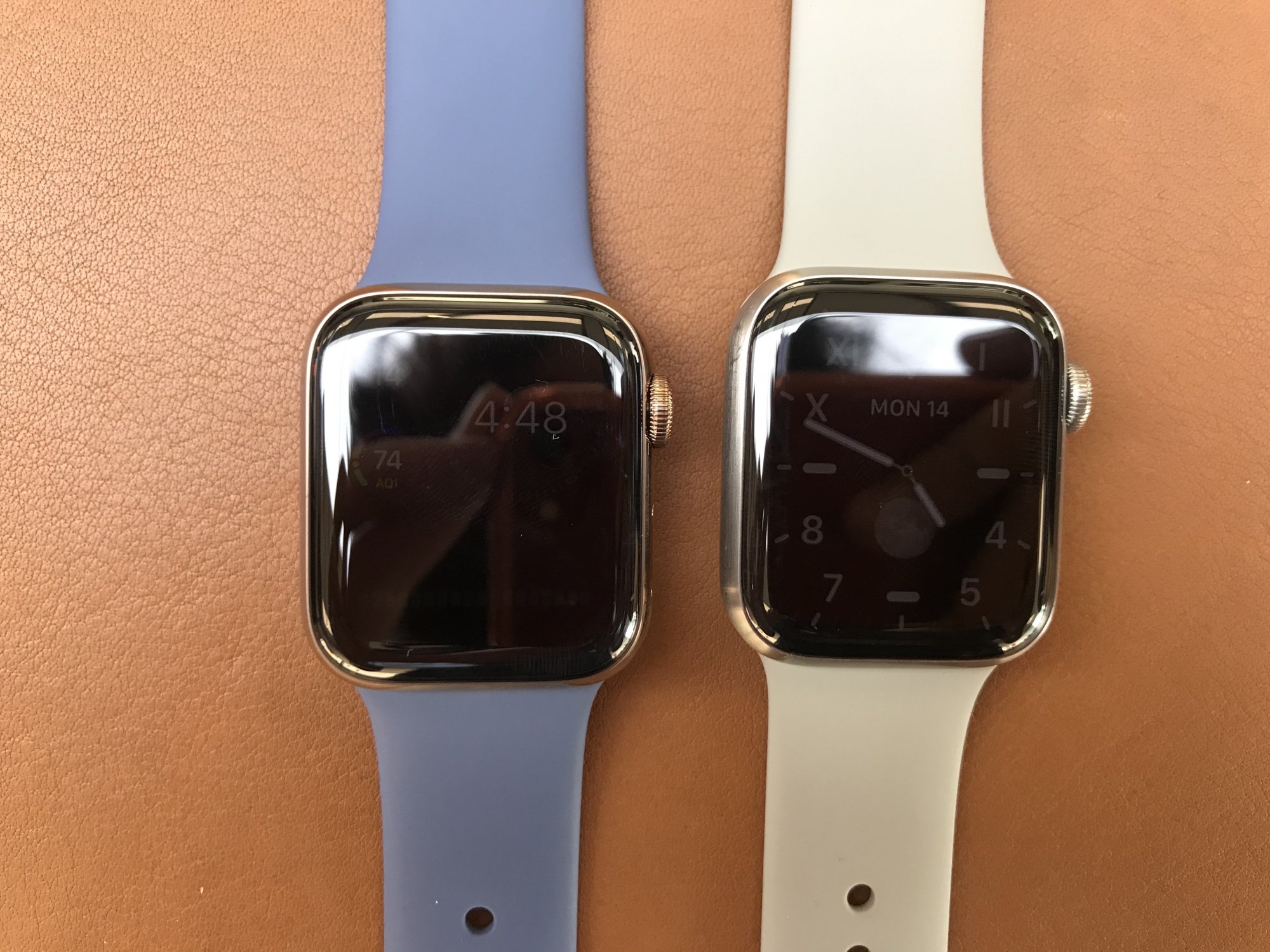 I don’t own these watches, but I do have a gold stainless steel series 6 Apple Watch. I can find some photos from my archives because I always visit the Apple Store to try on the stainless steel Apple Watches and compare them with other finishes.Hi everyone, I used to own and love the gold stainless steel Apple Watch Series 5 and color was perfect for me but I sold it couple of years ago. The gold on Series 6/7/8/9 looked too ‘champagne’ for my taste. With Series 10/11, the gold titanium seems closer to the old S4/5 tone, but I no longer have my S5 to compare in store.