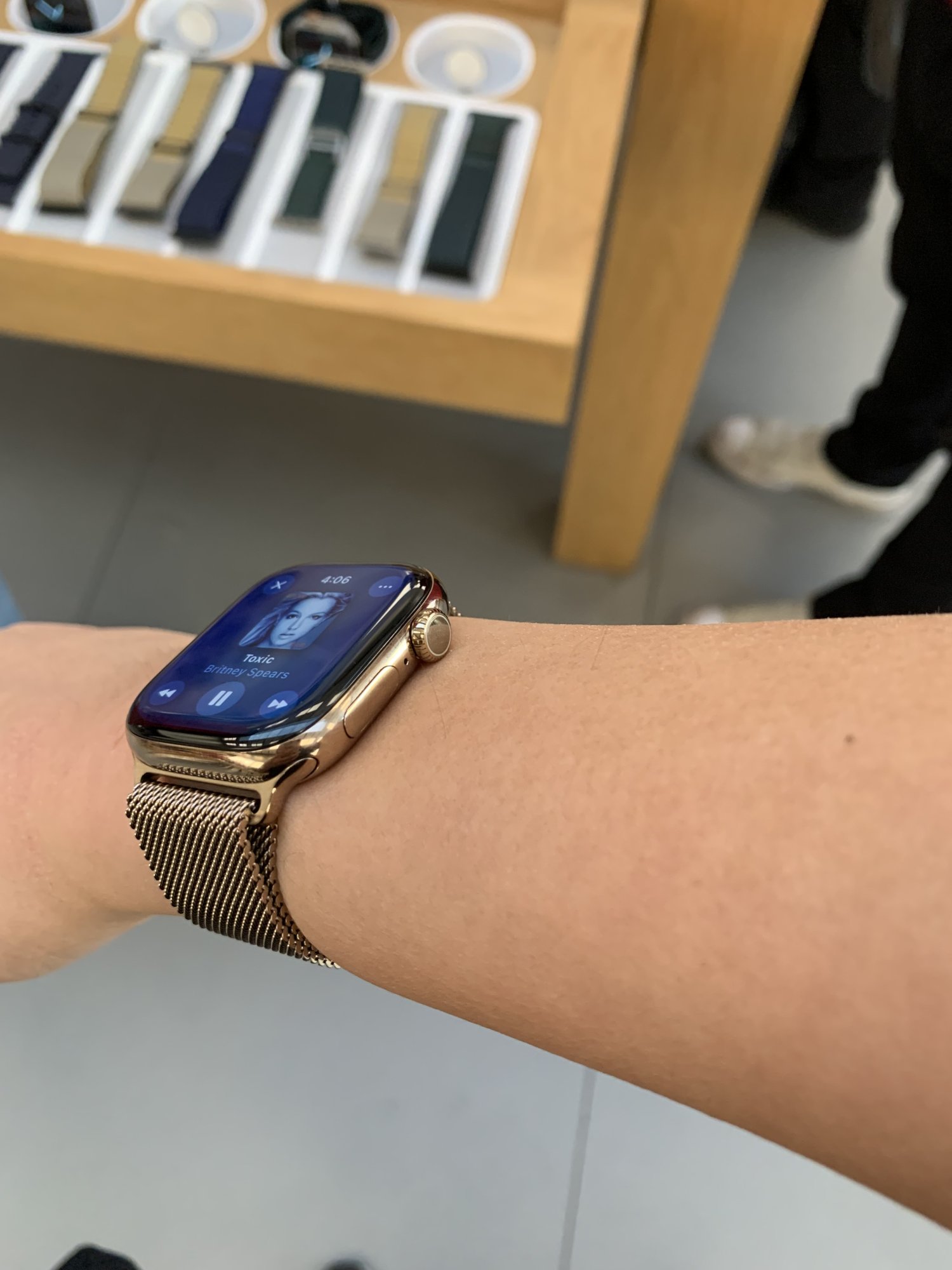 Here are some pictures of the gold stainless steel Apple Watch Series 4 and 5: