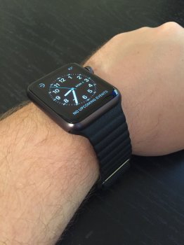 That really looks great, I do like that band!Here is Space Gray 42 with Black Leather Loop. Just got it today, had it only for couple hours. I know its whole lot better than black sports band. Feels good and looks more dressy.