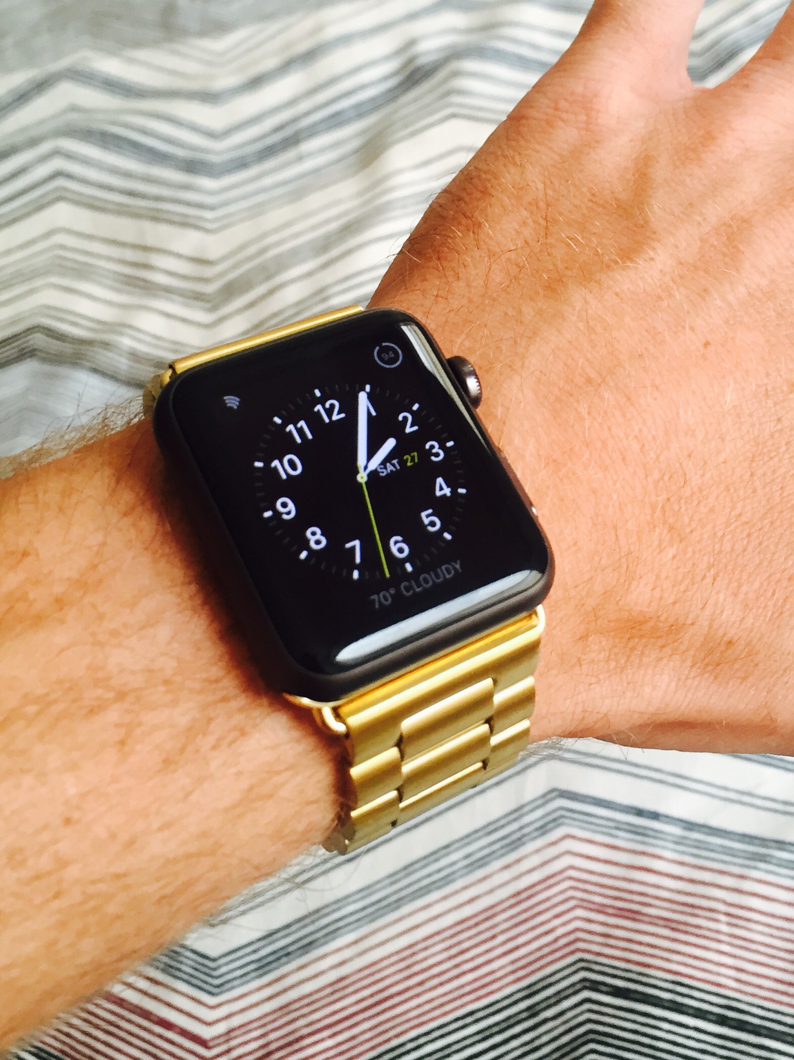 By the time I was ready to spend the money, Apple had of course announced their watch. So, I waited. Then, I waited some more. Waited a little more, until finally, last week, one of the local Apple Stores had some in stock for reservation. I reserved one. Went in to try it on. Messed around with it a little bit, and in the end got it.