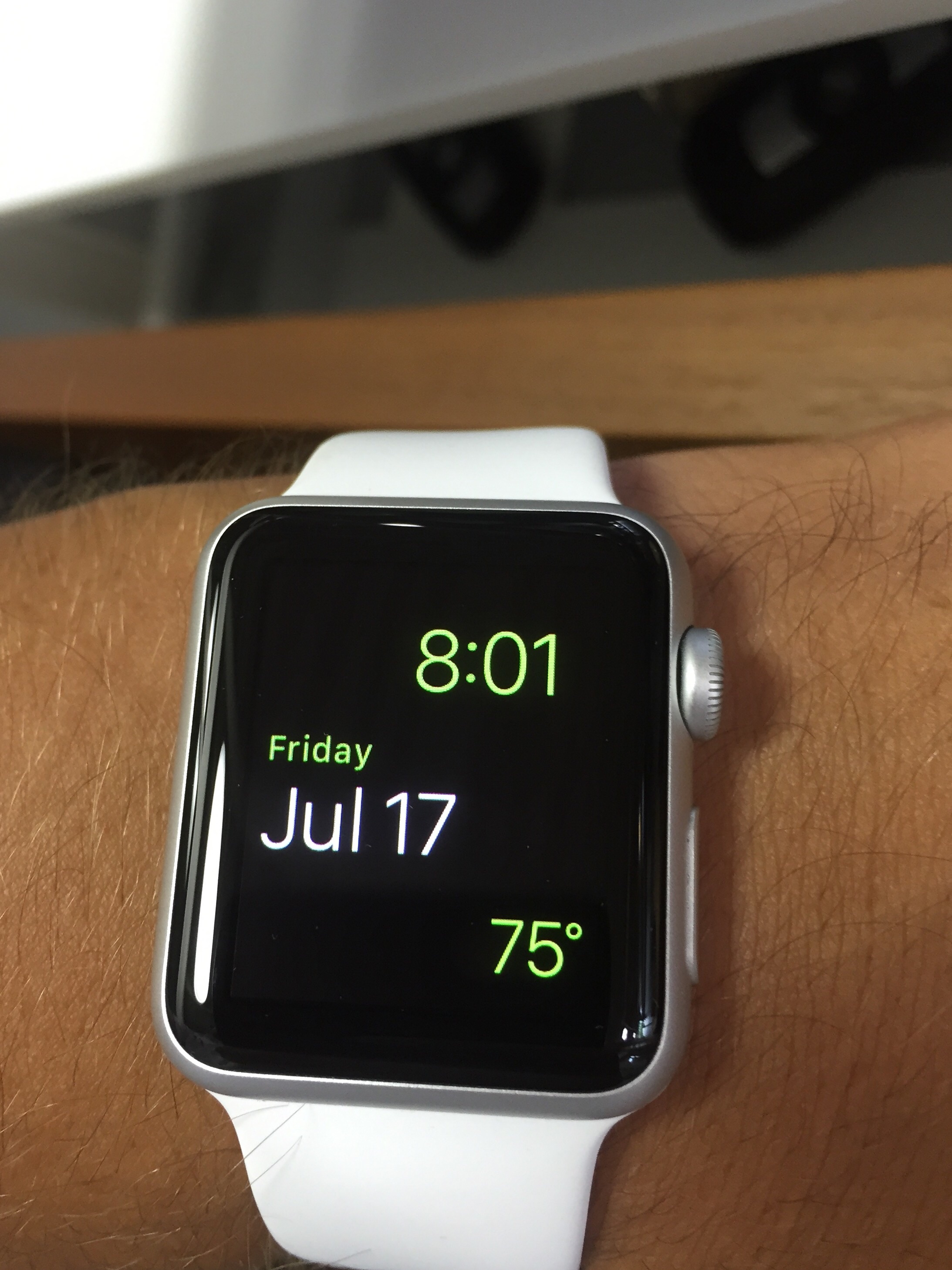 Same for me on square/rectangular watch faces. I have the 42mm so it's a bit more rectangular. Now that I've had mine for a while it just seems normal. I do think when you want to do something other than tell the time, the rectangular face is the way to go. I've seen a number of the smart watches trying to fit text onto their round faces and it just looks so bad. Not esthetically pleasing at all, many times truncated and a form factor that an inexperienced person would think to design. Reminds me of when scalable fonts came out on the Mac and then PC and the masses would mix tons of fonts on one page and clearly inappropriate type sizes for text and headlines. One ugly mess.