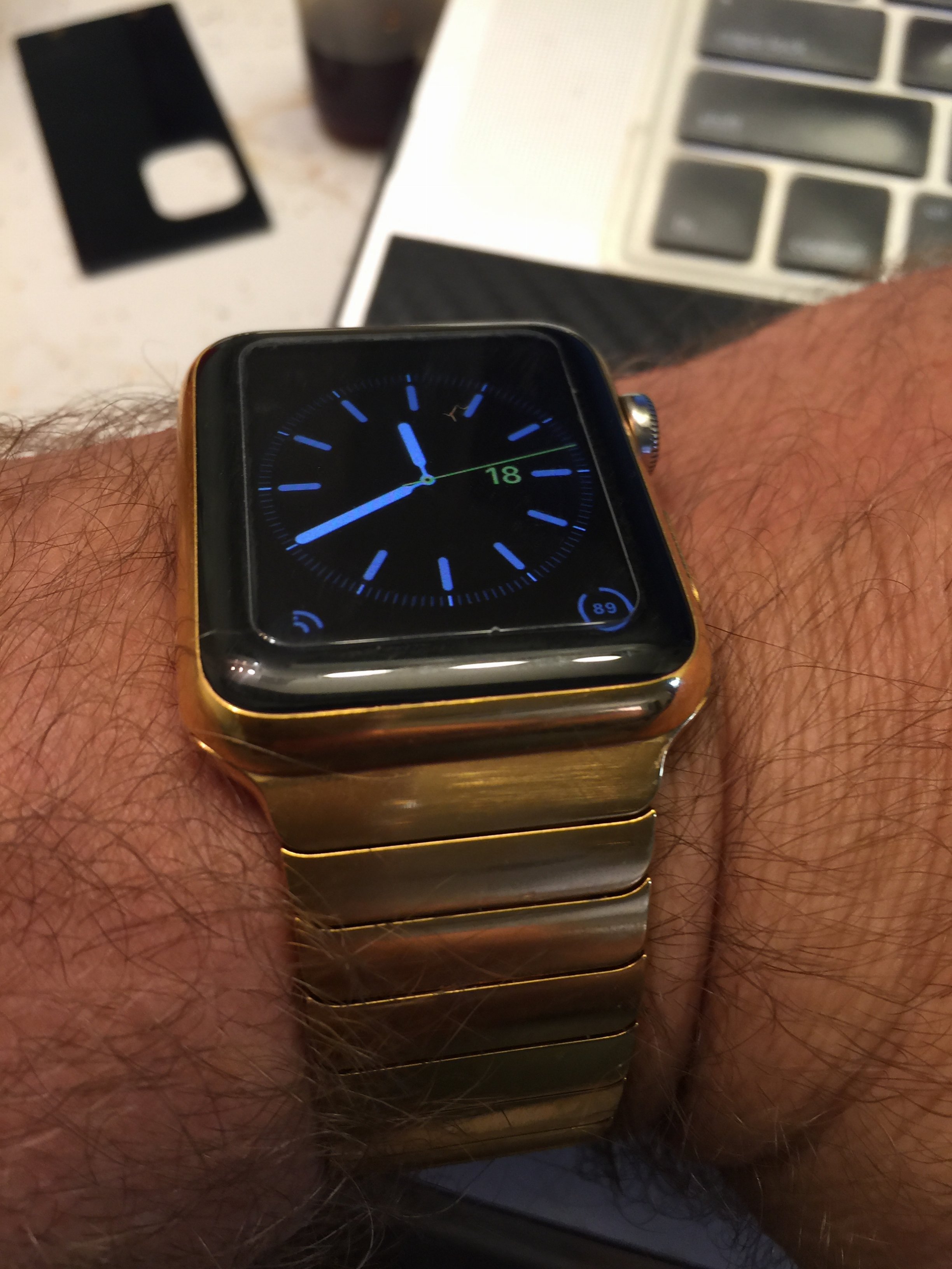 I Donut like Gold at all but I like that you like it. Whats up with the last photo. The lower side of the watch and the Link bracelet? It looks like the gold is separating from the stainless steel.