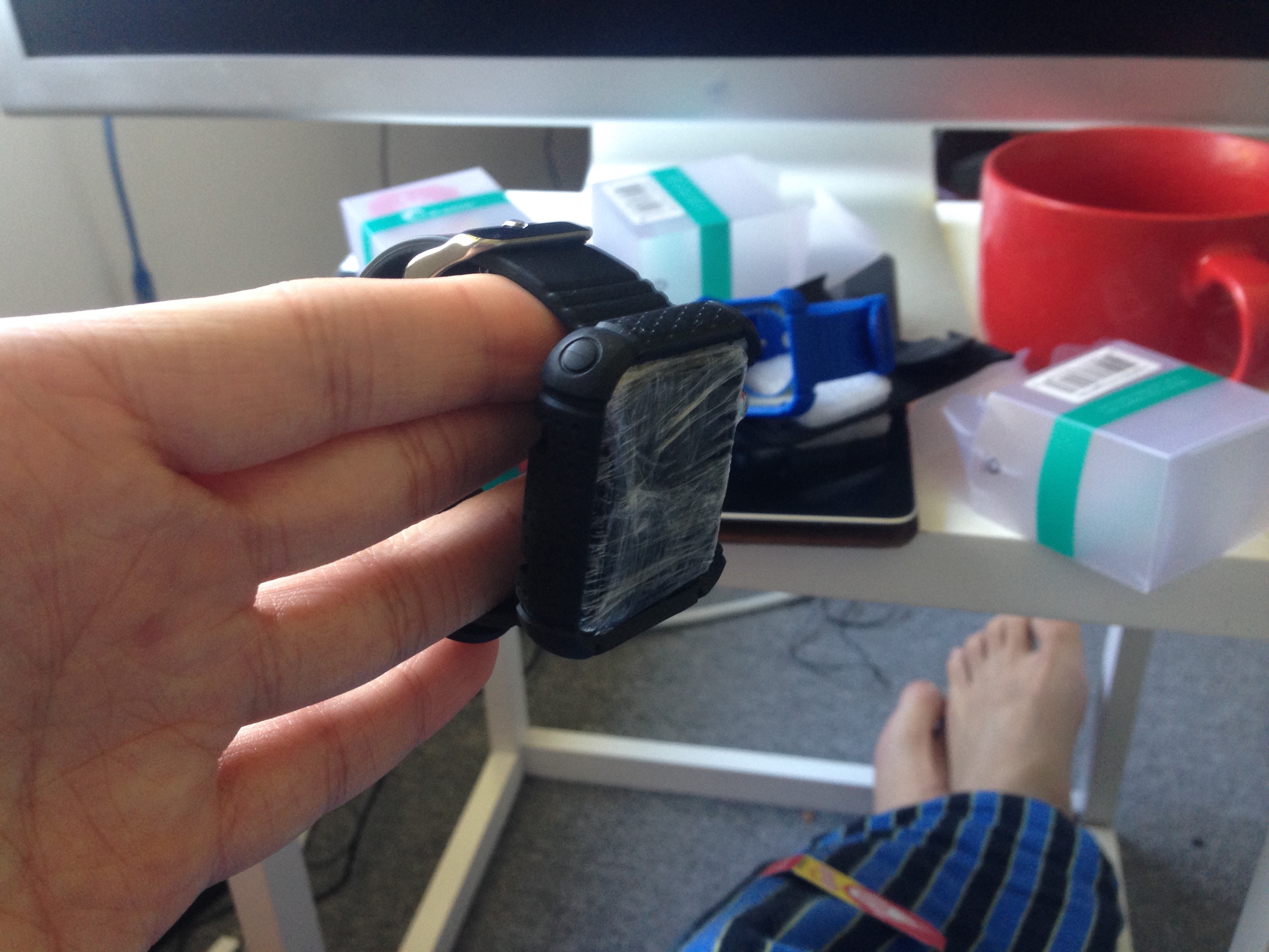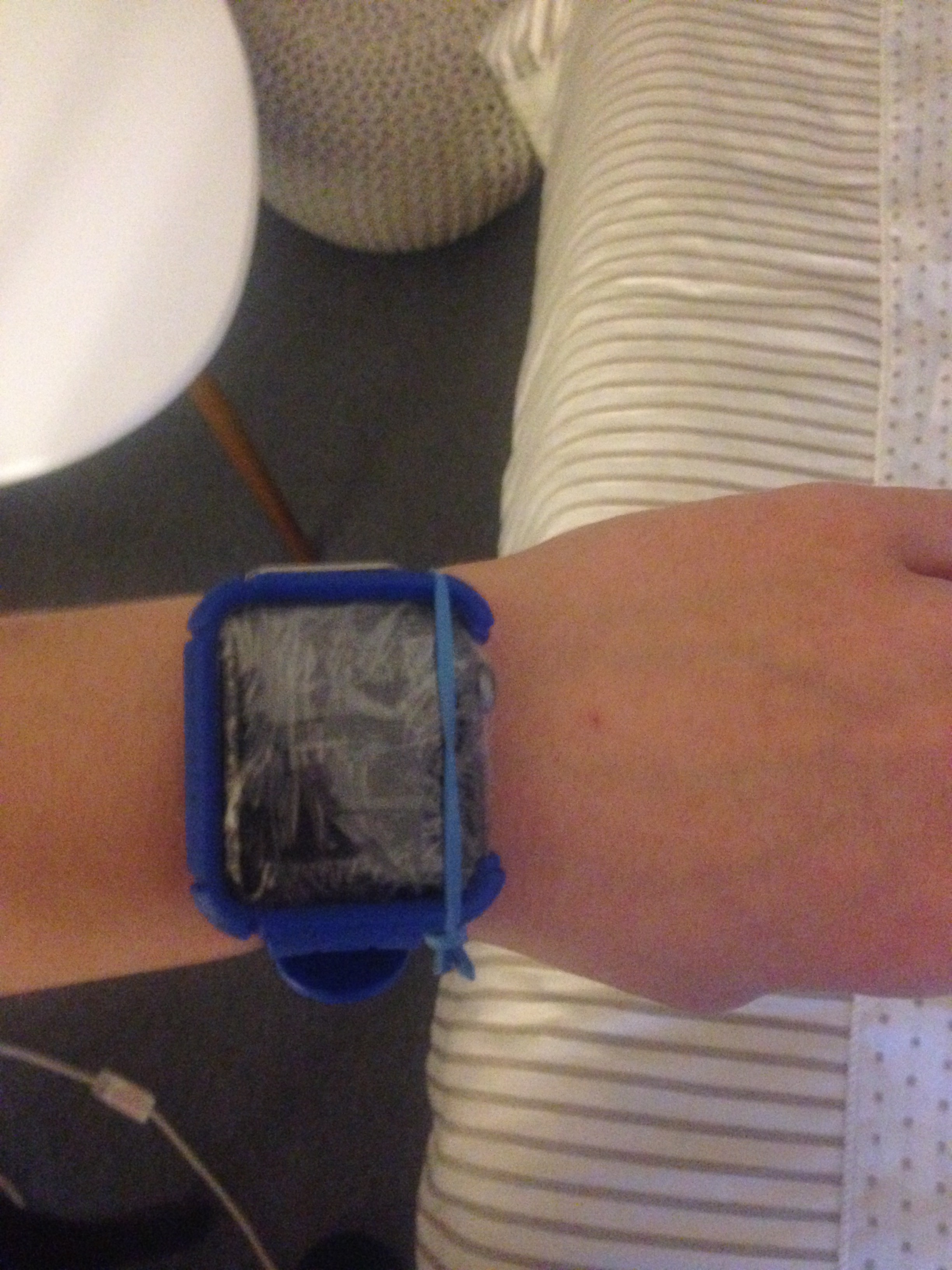 2. Buy some clear stretch wraps. wrap the core watch up.(make sure the lens on the back only be covered only ONE layer, and also don't make the buttons side too tight,, won't be able to turn the crown)
