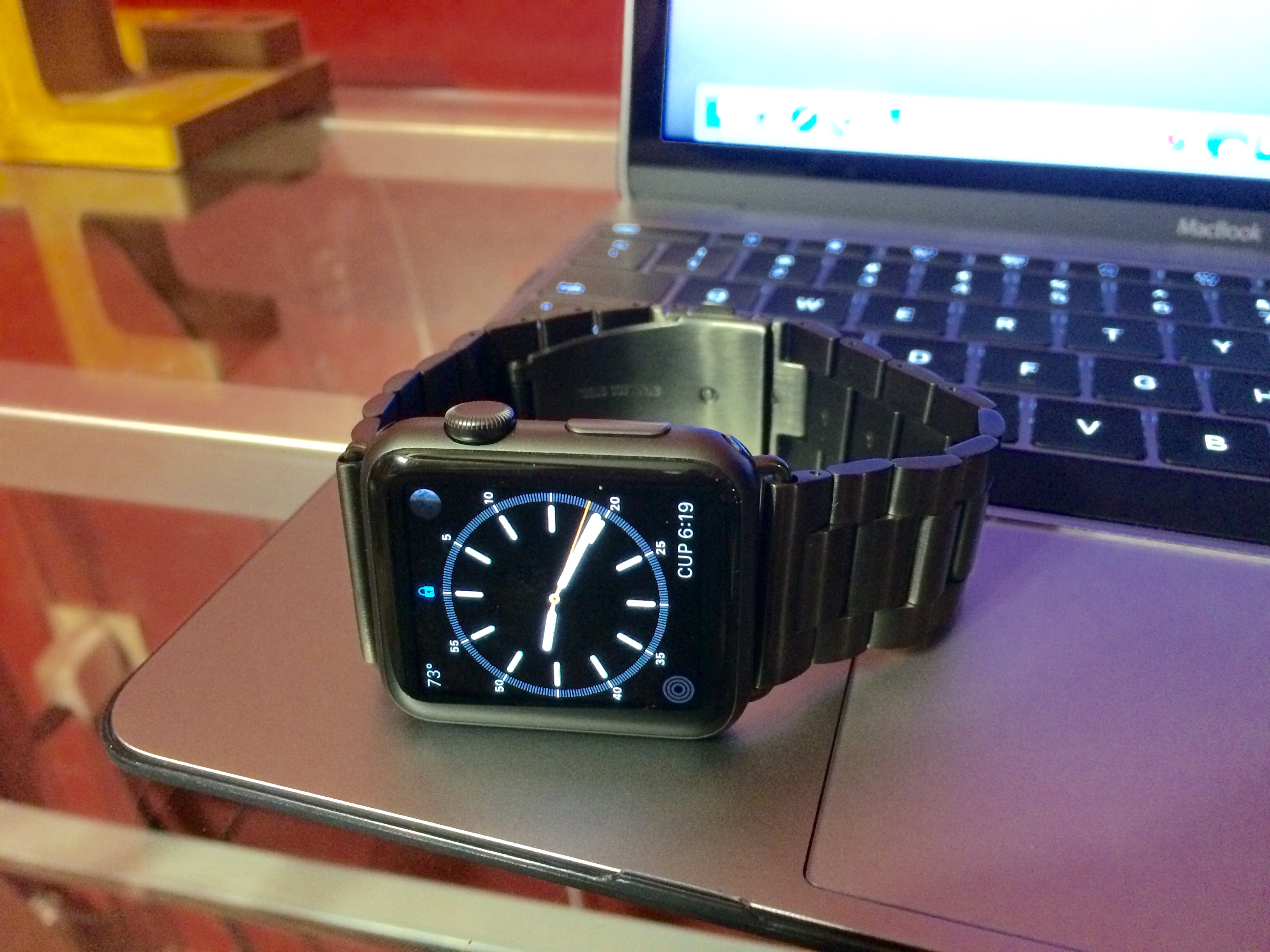 I have a big confession....I went back to the pebble time =/. The way I use the apple watch is strictly for notifications and the e-ink display is fantastic. So here is a new pic. Yes, it does look like a child's toy in comparison.