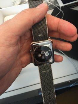 Managed to snag a Space Black Milanese and a few colours of the Woven Nylon band today. Here's a few quick, crappy pics!