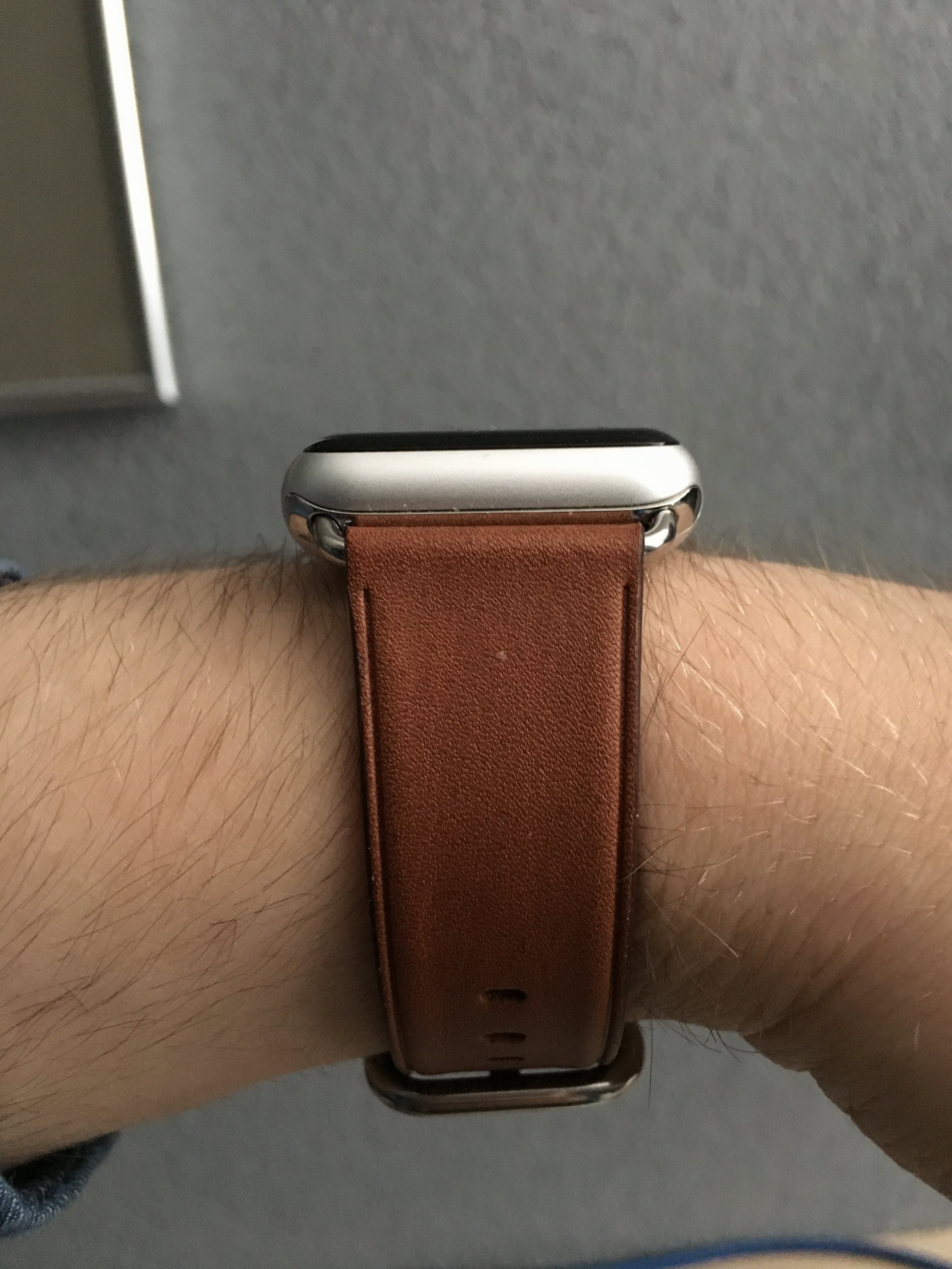 Got myself a Saddle Brown Classic Buckle for my Apple Watch Sport. The stainless steel on that aluminum case doesn't actually bother me as much as I thought it would.