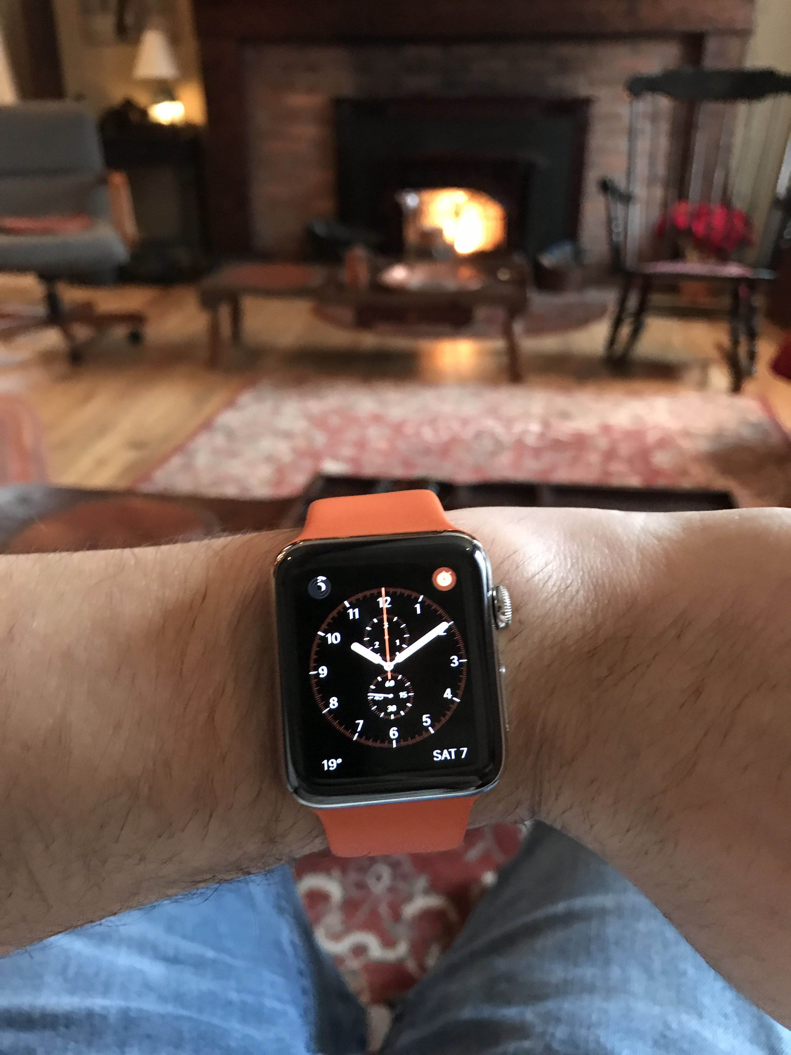 Love the orange bandSaturday vibes! A cold day, warm fire, and a good book.