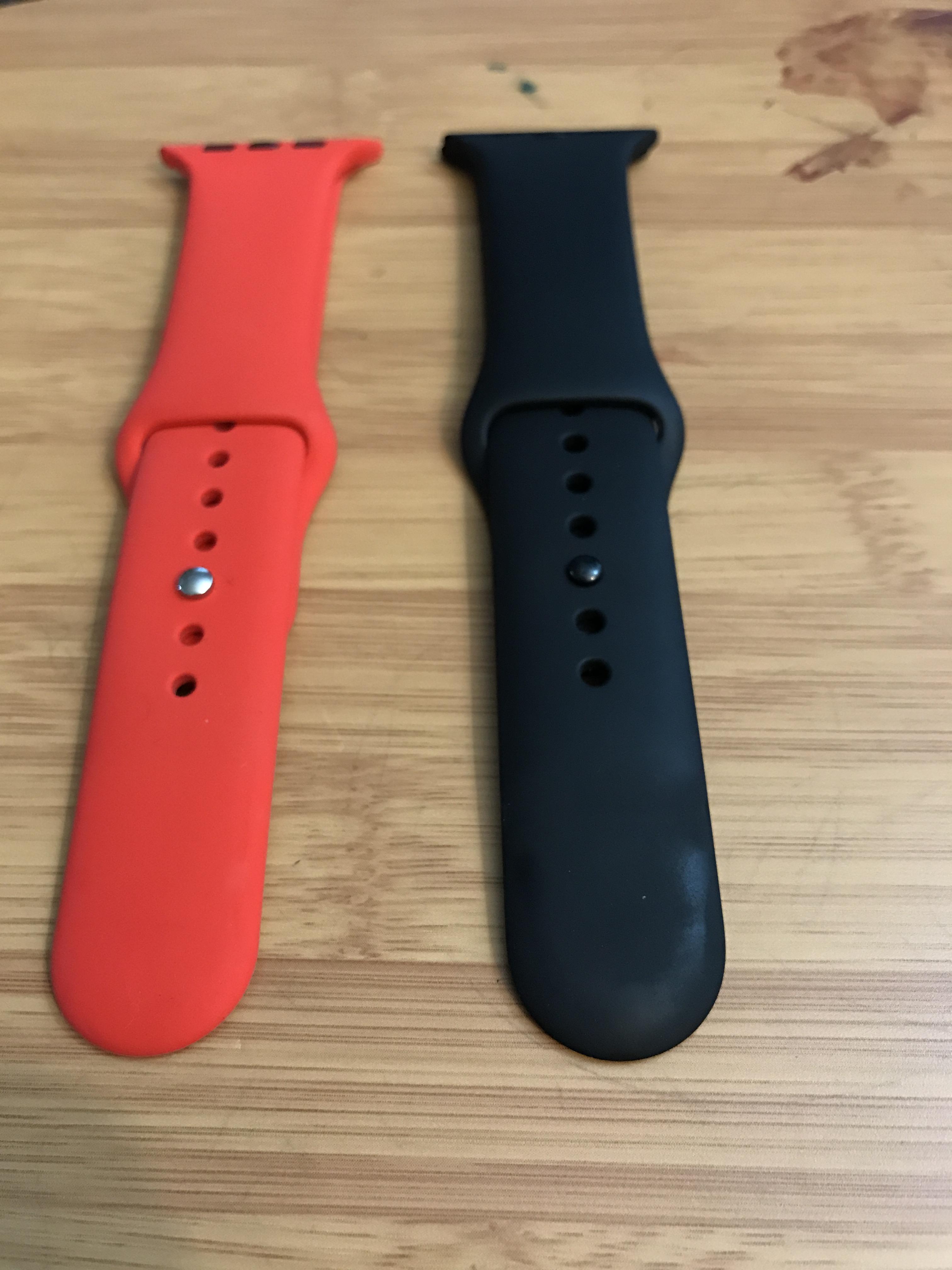 The red one I bought is really pretty damn close. It's actually thicker than the apple one, and it's very soft, although it's not quite as smooth, but I imagin if I took a magic eraser to it, it would end up feeling just like the apple one. (Red one is the knock-off).Sorry, but none of the third party sport band copies feel remotely as good as the original. They are thinner, way less supple, attract lint and have molding lines. There are lots of nice third party leather bands, but the sport bands from Moko et al. are all rubbish.