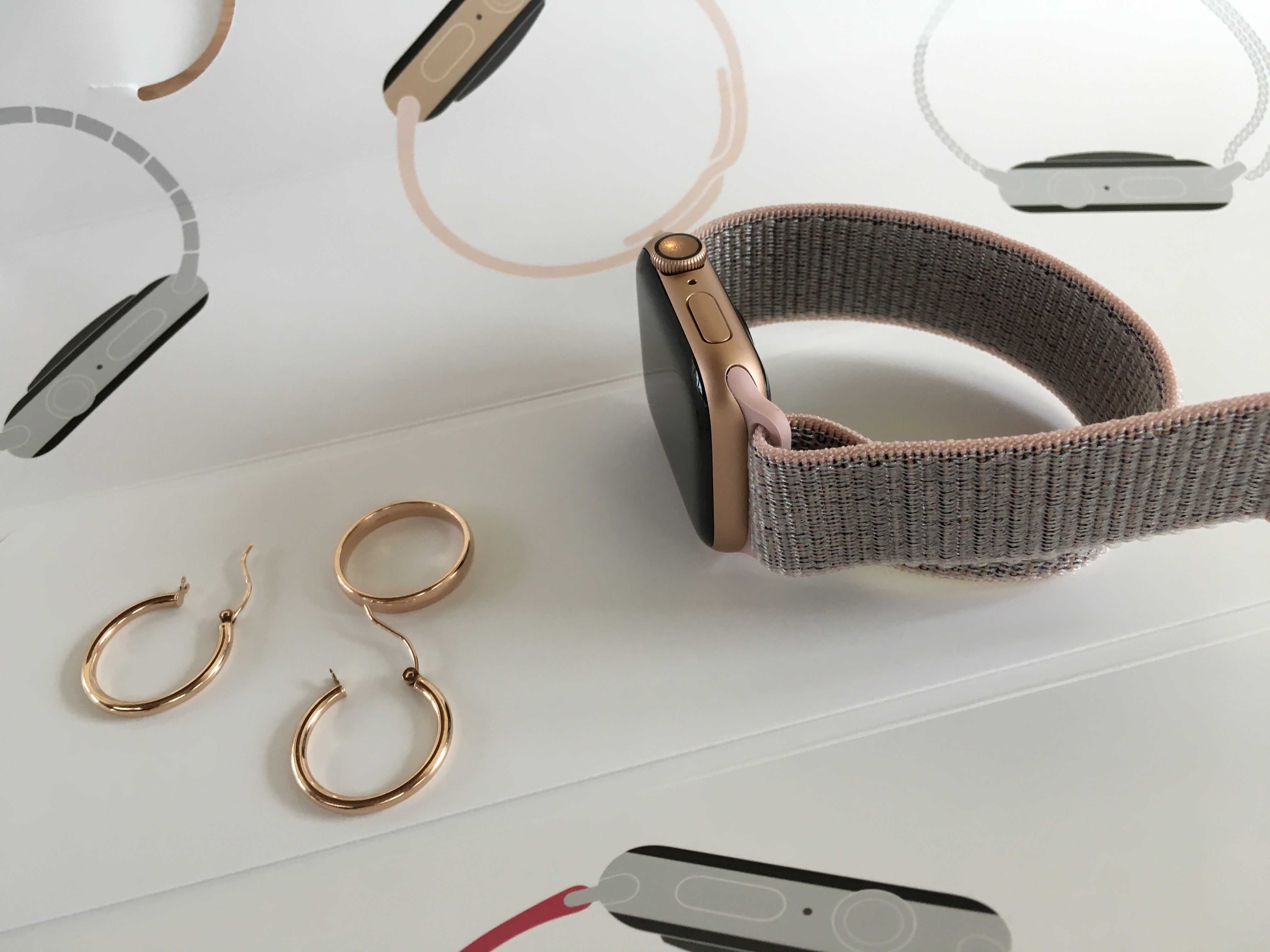 View attachment 789576 Here is a pic of my gold aluminum 40mm, next to my rose gold wedding band and rose gold earrings, for color comparison. I tend to favor rose gold over yellow gold, so I’m very happy with this aluminum color.