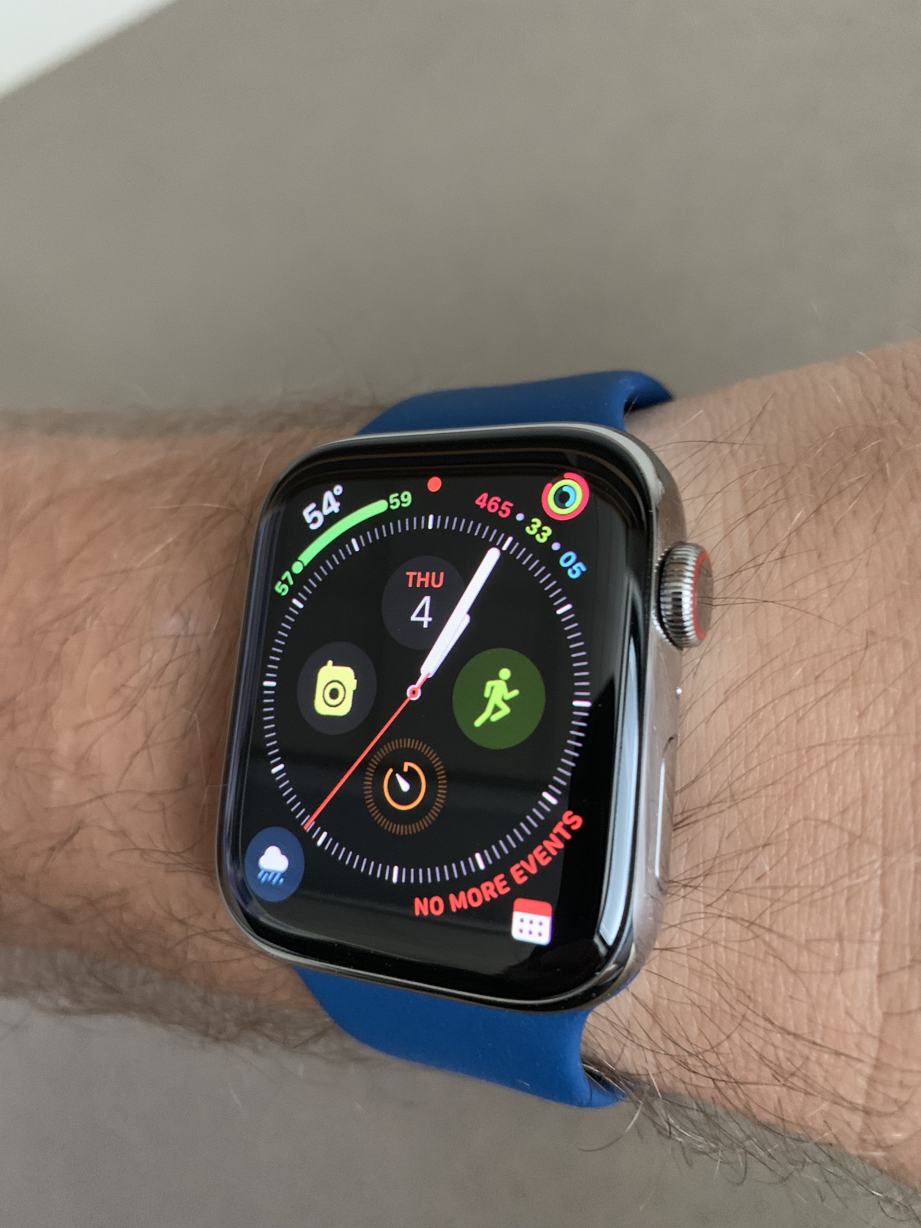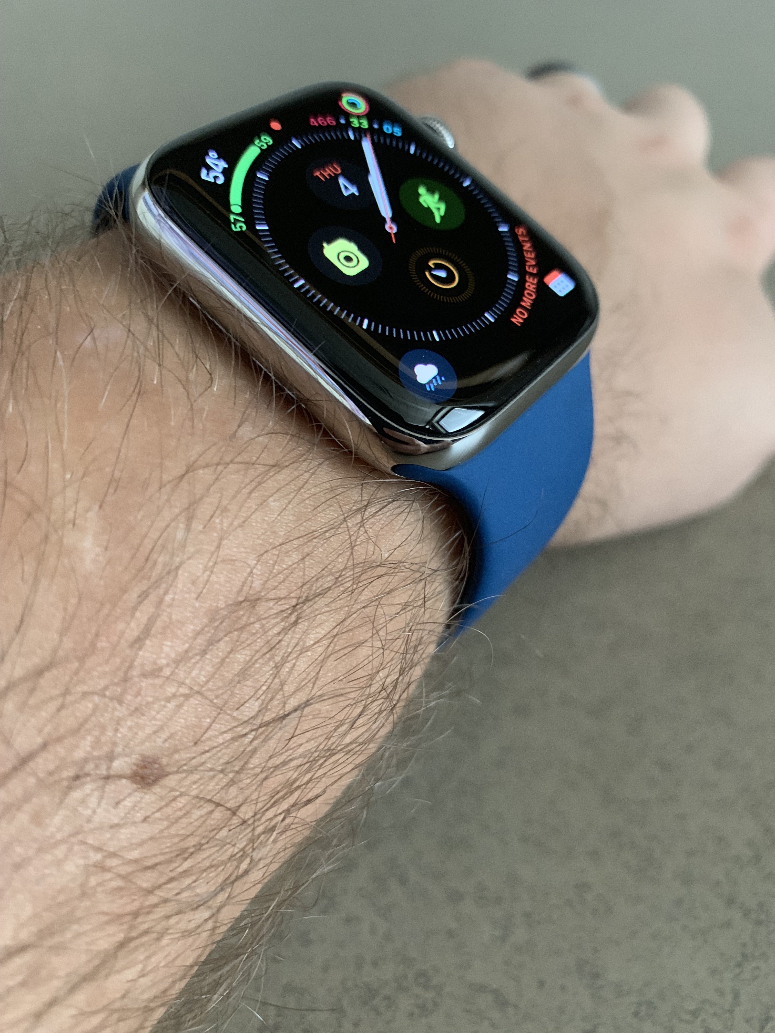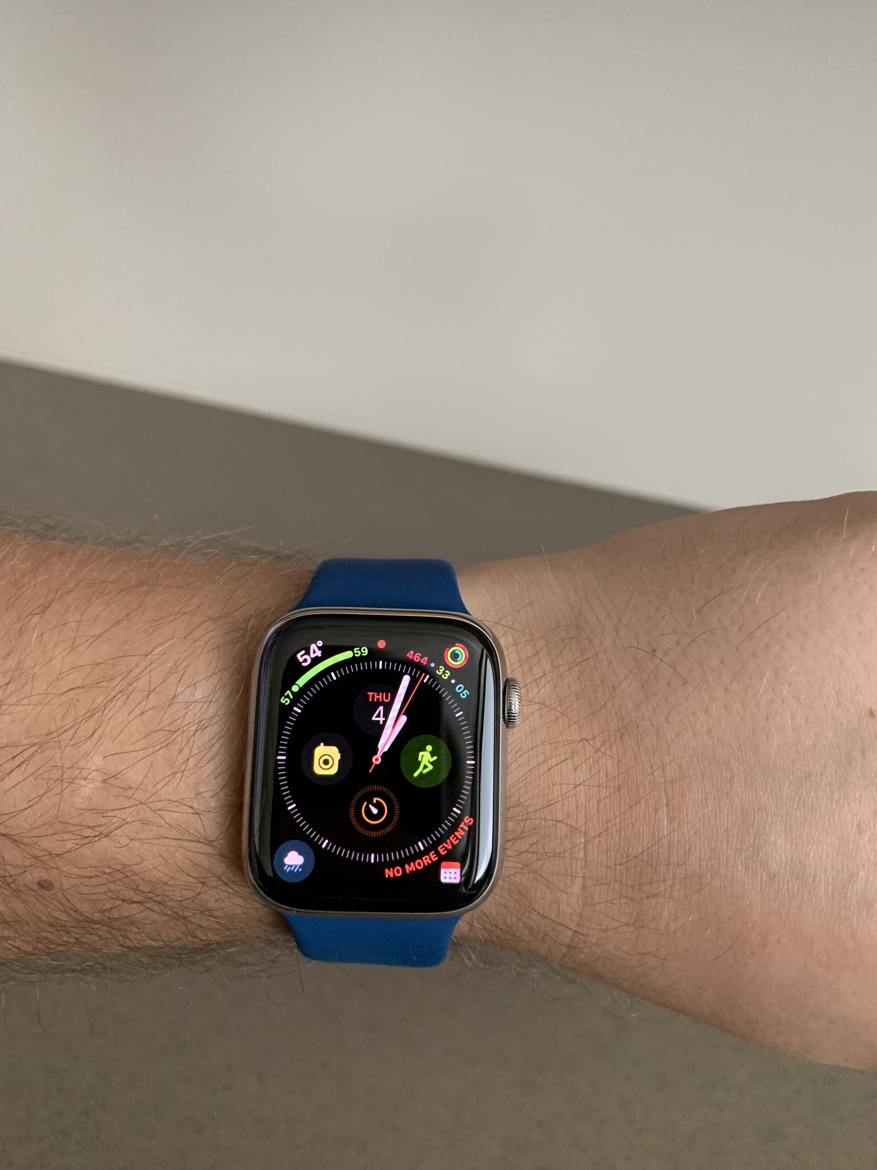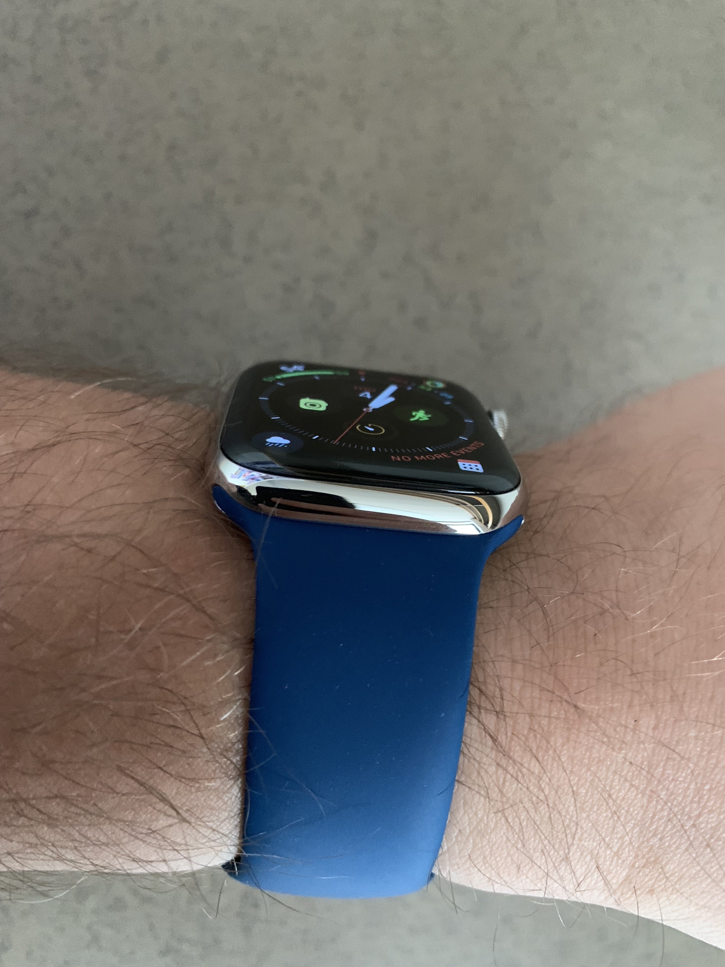 I really thinking about if to buy this band or not, because i've already the midnight blue and the ocean blue one that was released with the collection bands of the series 2 that came out thenAs promised, here is the blue horizon sport band on my 44mm SS S4. I forgot to take shots of the storm gray sport loop yesterday so I'll have to post those another time. This is my favorite sport band that Apple has released so far. It looks a little darker today because it's really gloomy outside and I never use lamps in my office. It's a rather medium blue with striking saturation and a hint of warmth which brings it slightly towards blue-green but is still firmly blue. Kind of like a deep ocean blue of sorts.