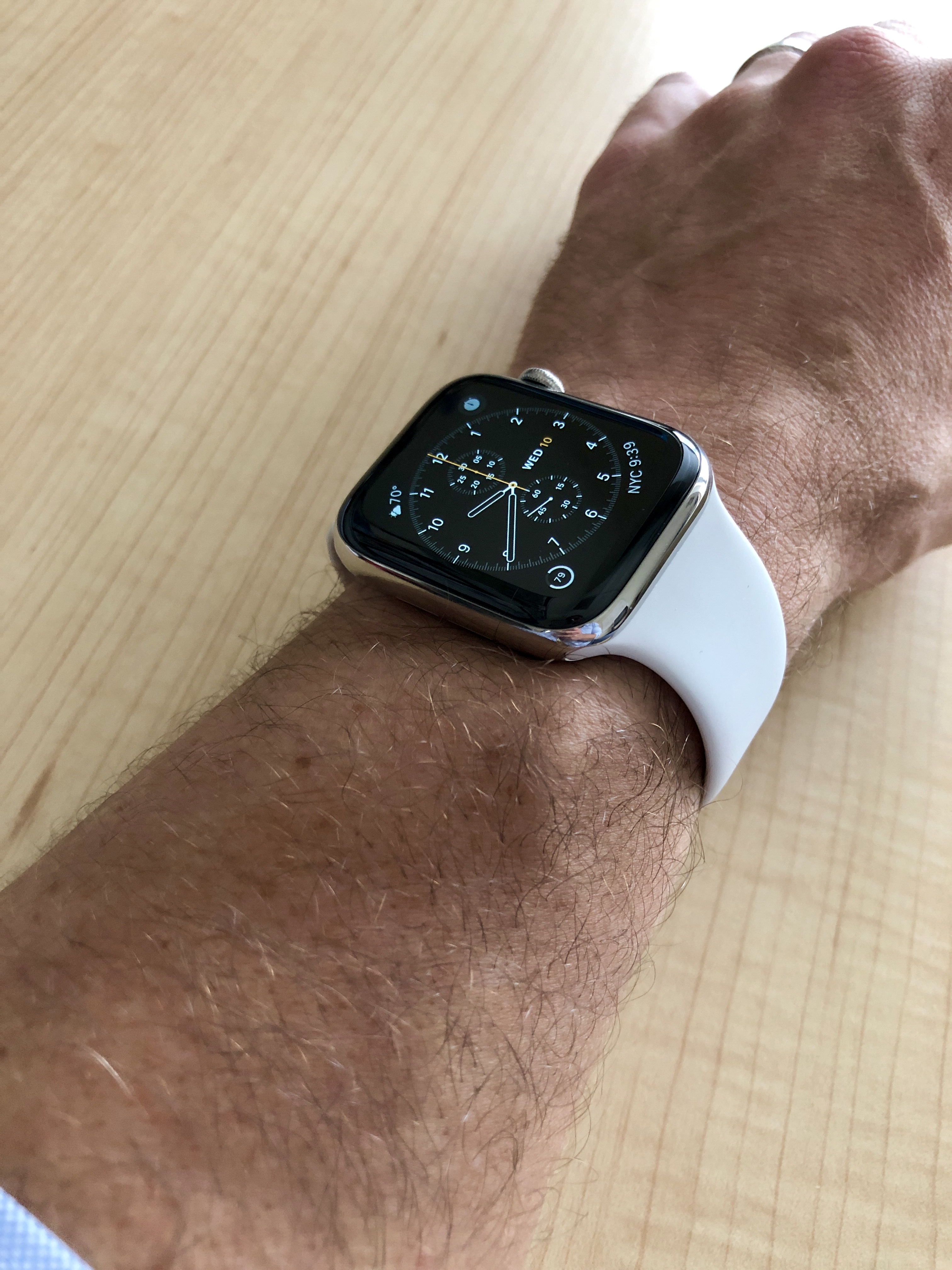 It’s definitely bigger, it goes edge to edge on the new displays. So if it was a nickel, now it’s a quarter. The chronograph face looks terrific. IMO the infograph face (and the modular inforgraph face) is a cluttered mess. Let the hate rain down on me.mjr1000: If too hard, no worries, but would you be able to measure the diameter of that chronohraph face in mm (or, heck, measure the diameters of the simple or color)? I'm curious about how the increased screen display also increases the diameters of the classic Apple Watch dial faces. Do they measure about 30 mm across on the 44 mm? (And again, not the screen display itself, but the actual diameter of the dial faces. BTW, if too hard, that's okay -- I think I'm the only AW wearer interested if the dial faces are now bigger than the old faces which are currently tiny and approximately the diameter of a U.S. nickle!