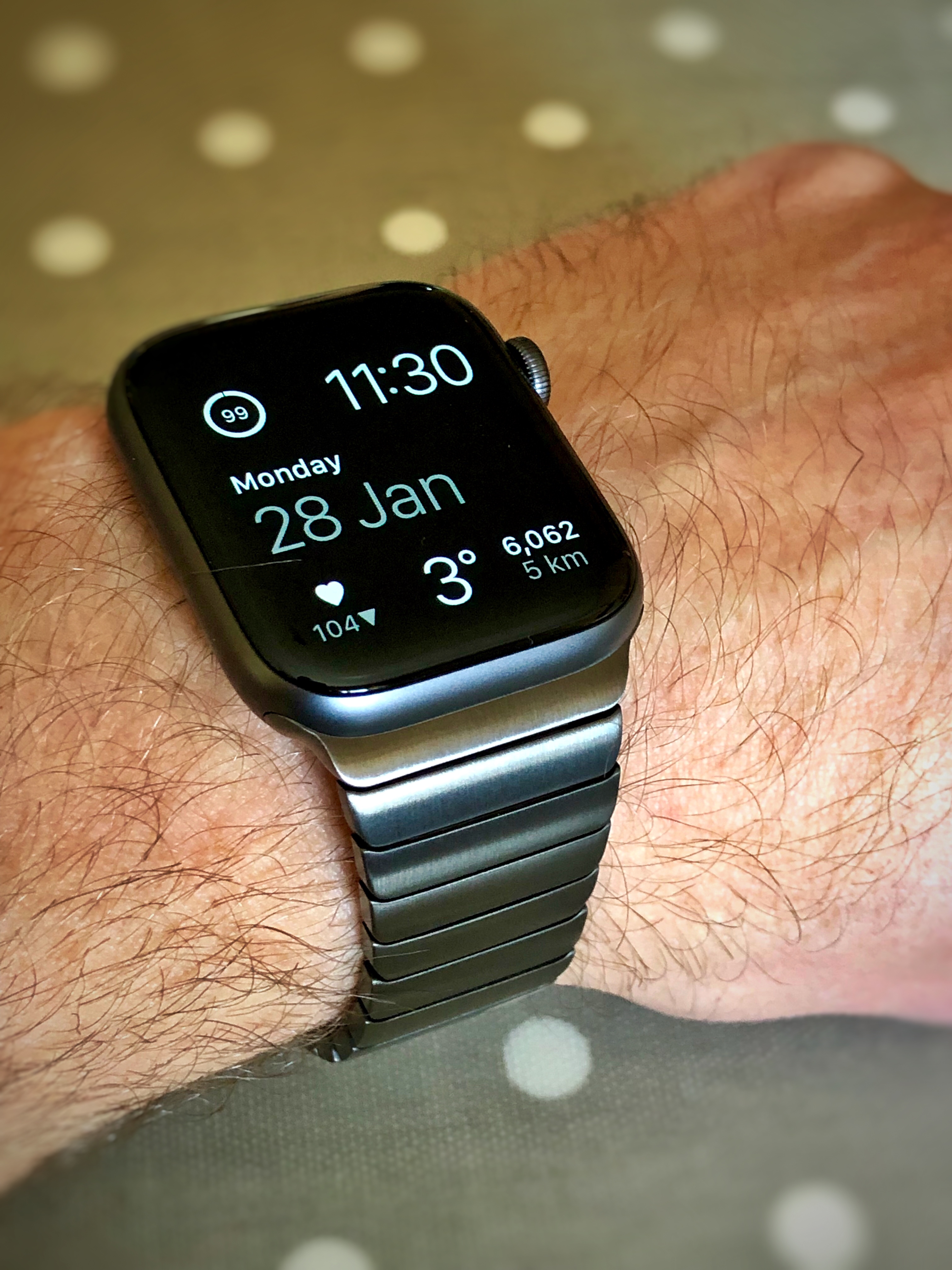 I got a Moko space grey link bracelet in today. I’m liking it more than the black one I think. Although the colour match is not exact.