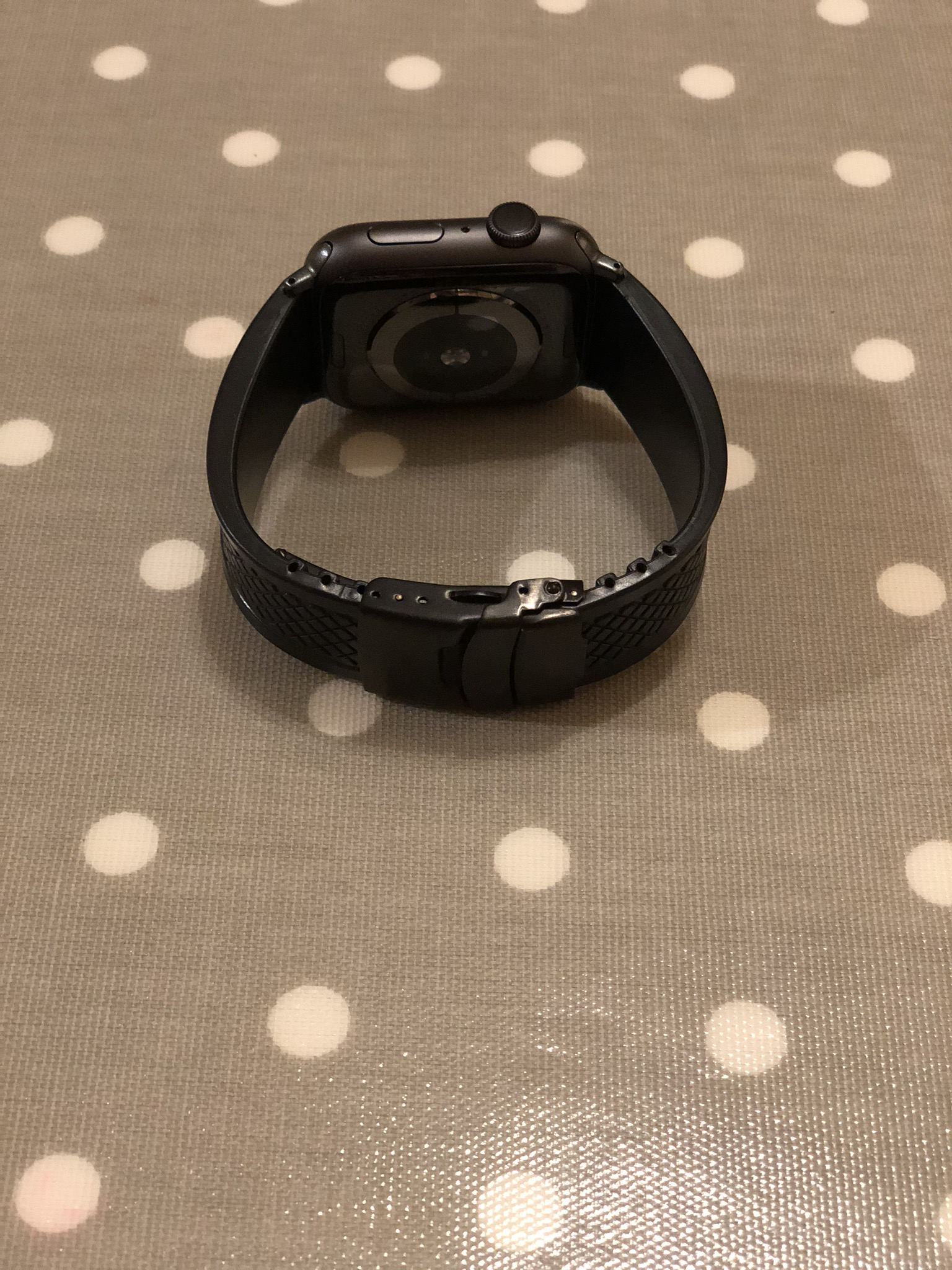 You need to order Apple Watch lugs. Initially I went with space grey but after wearing it I decided black ones would look better with the black rubber, and black clasp.