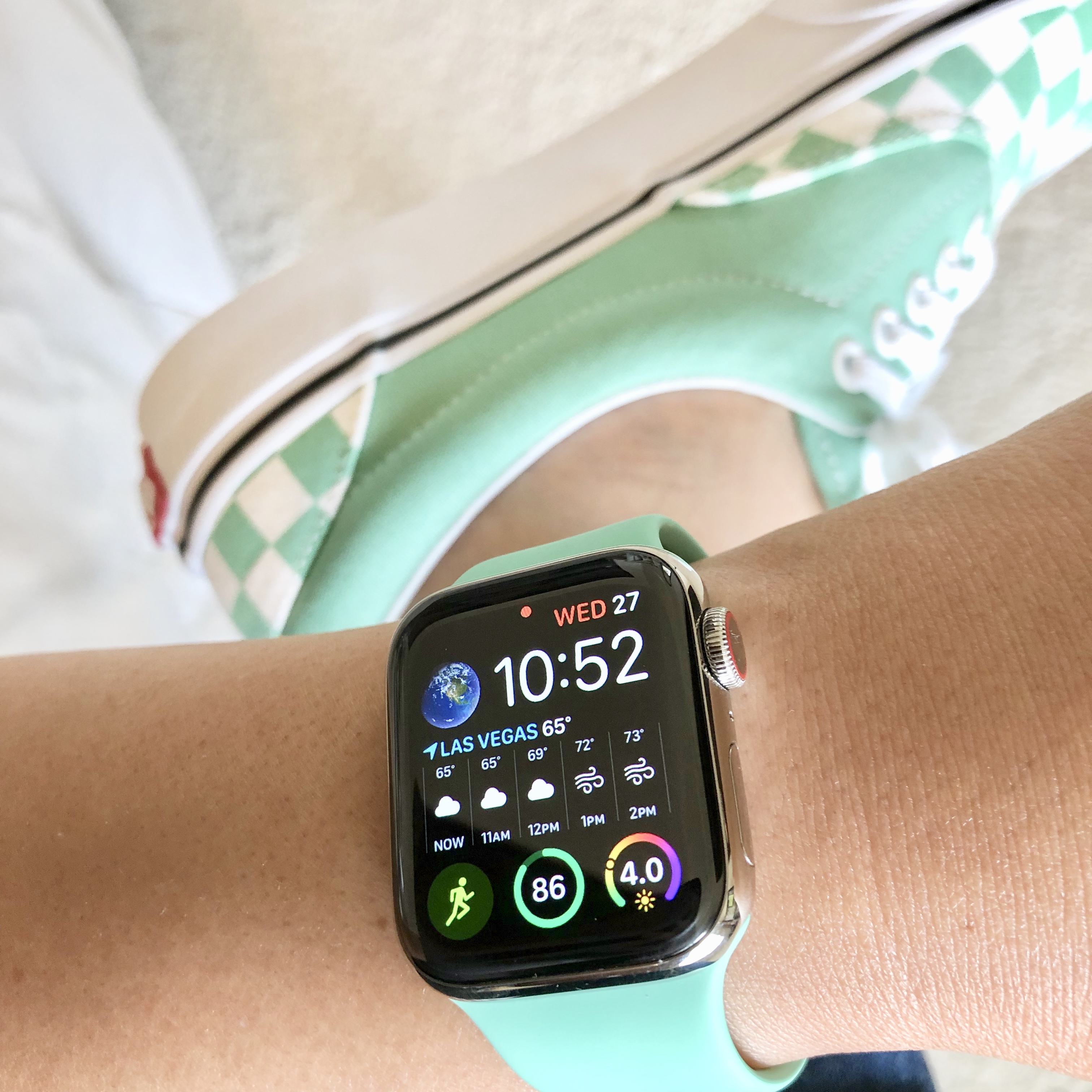 This made me put my sport band back on for a match.Spearmint Sport Band with Infograph Modular face. It's a pretty good match with my Vans.