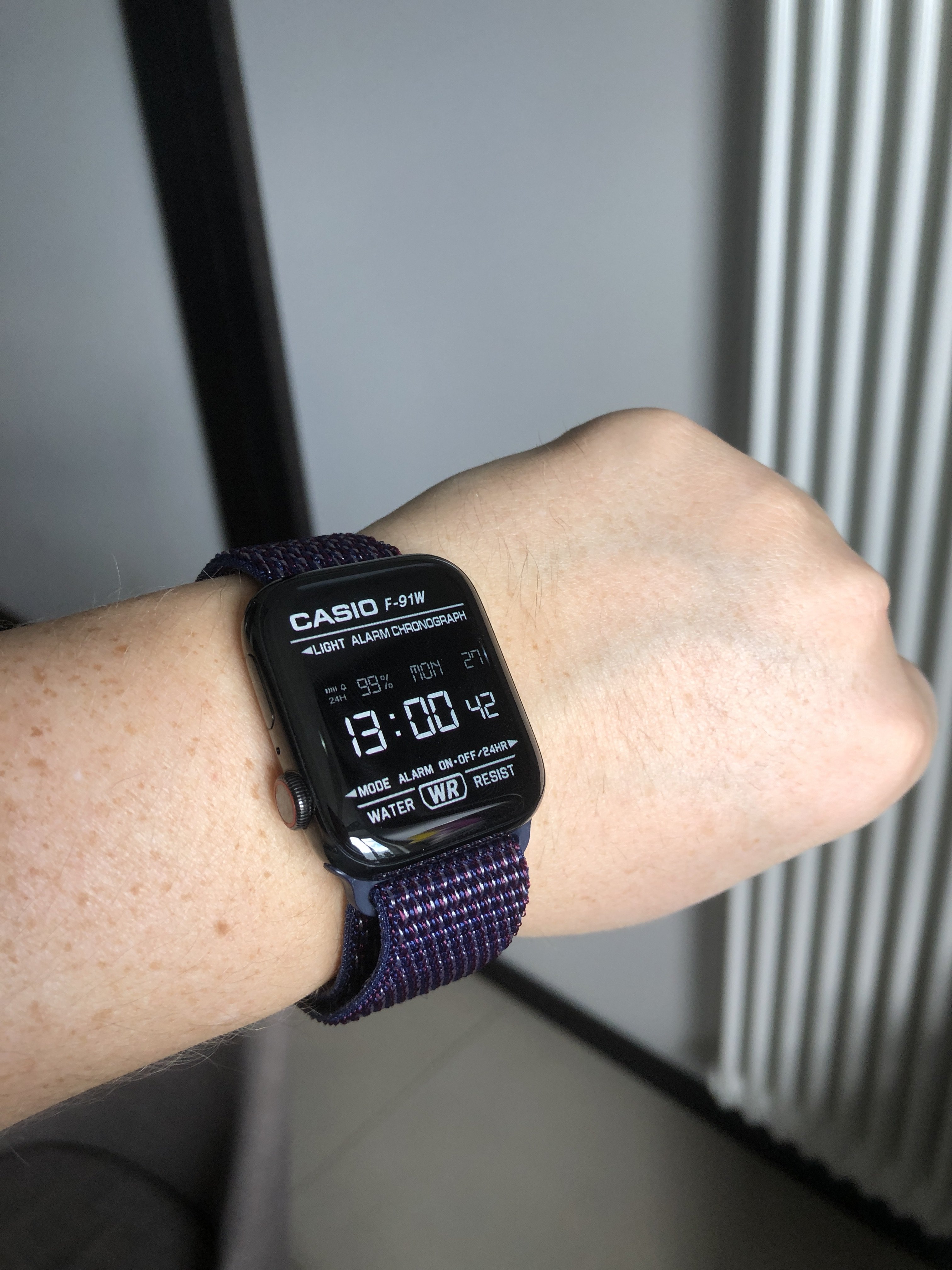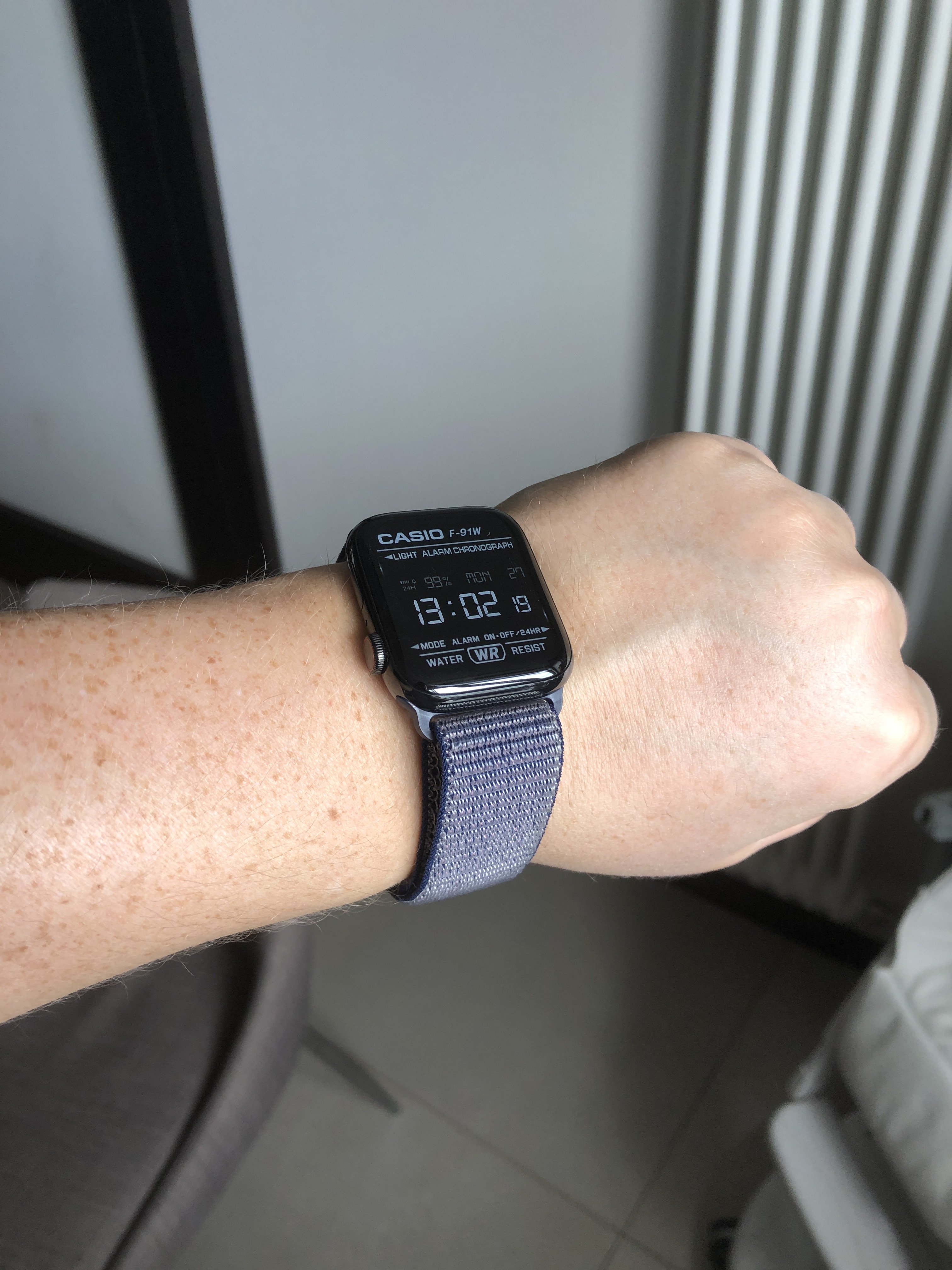 When you put your watch on the charging dock the the face changes to true Apple Watch face