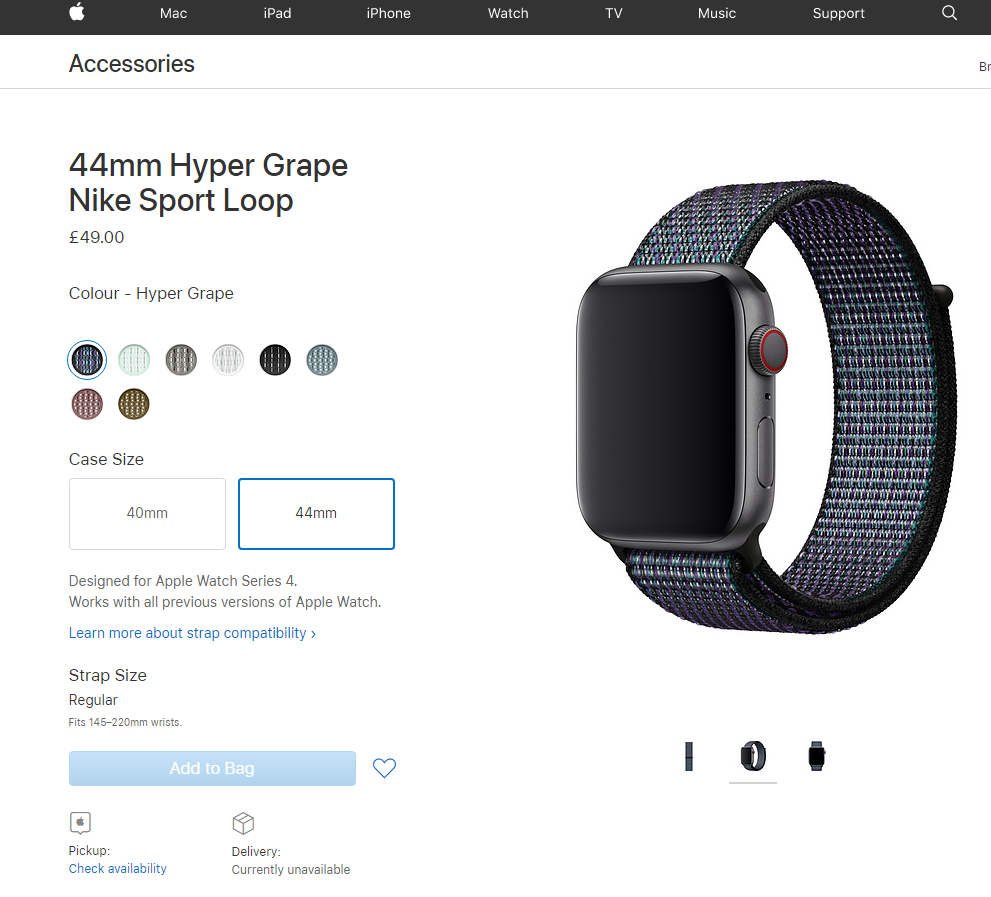 I was in Liverpool yesterday and they had 2x 44mm Hyper Grape on the shelf, I was tempted but didn’t buy one.It shows as unavailable for delivery but pickup it's still available at some of the branches. It's at the Metrocentre Apple store.... also Newcastle, Leeds, Princes Street, Liverpool and what maybe close to you... Bluewater, Lakeside!