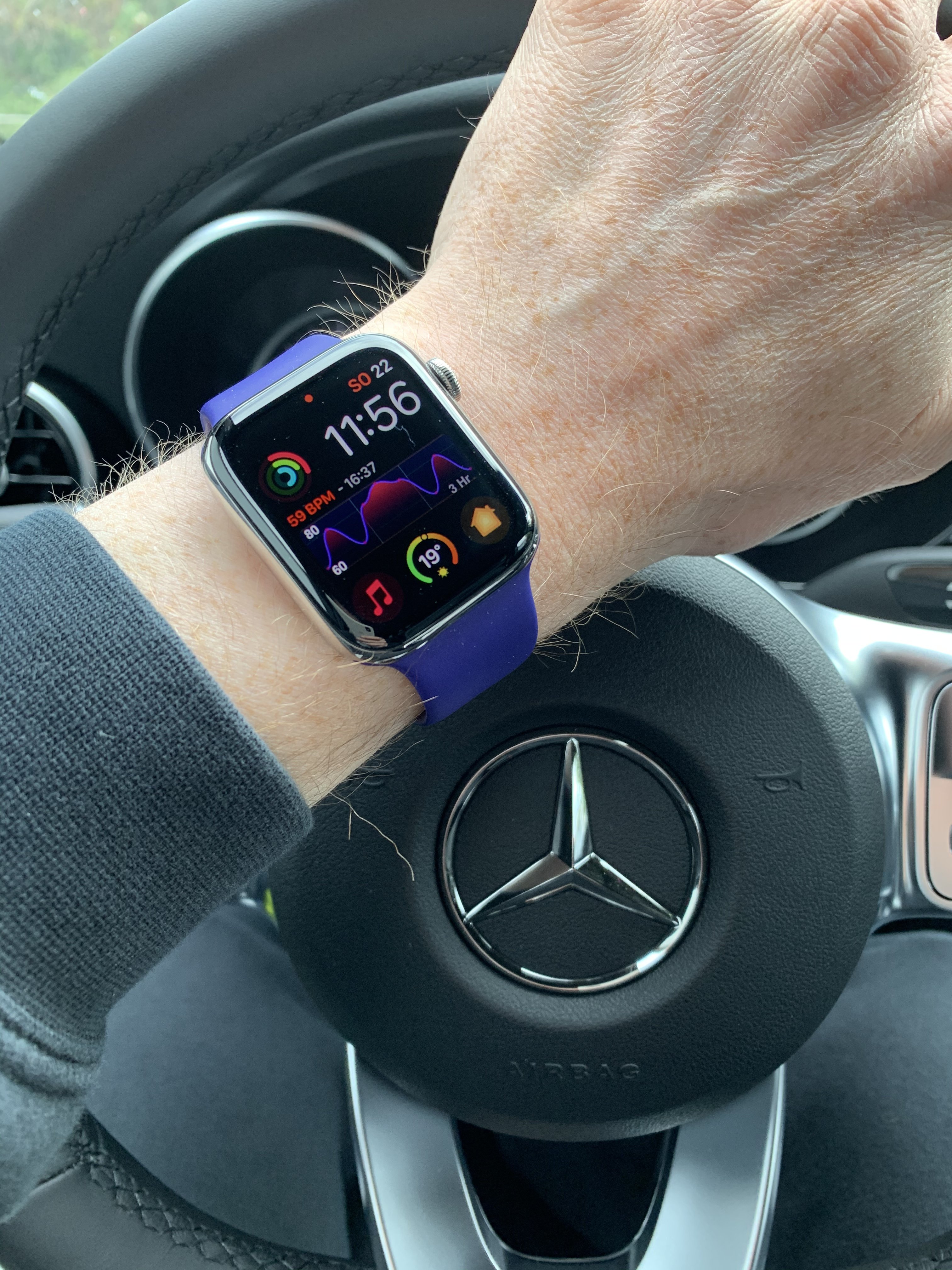 The full mercedes logo steering wheel really makes it popStill fully satisfied with my steel S4. Here with the ultraviolet sports band