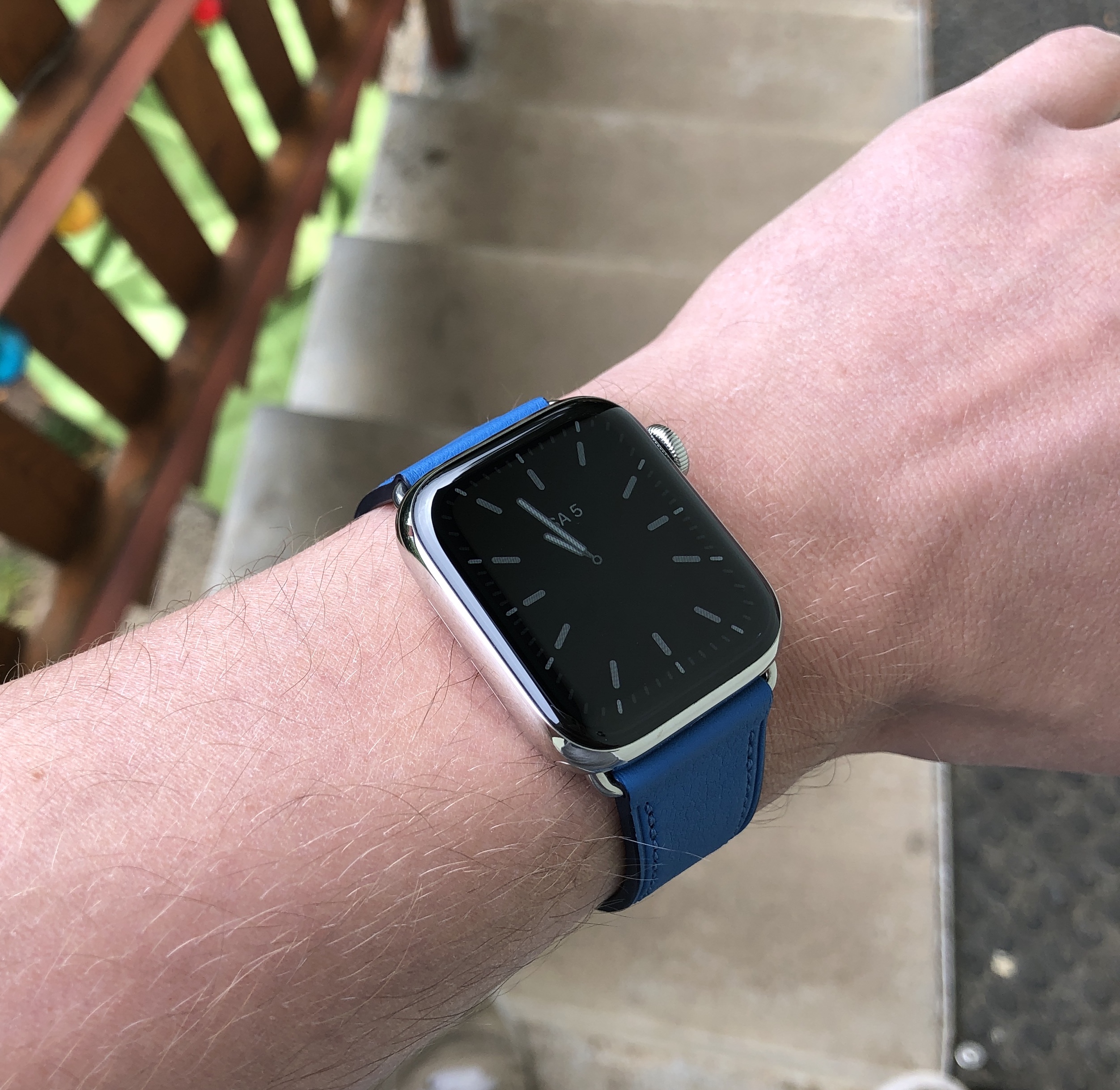 Apple leather band with classic buckle. Bought it back then, when they where still available.That's a nice blue, what band is that?