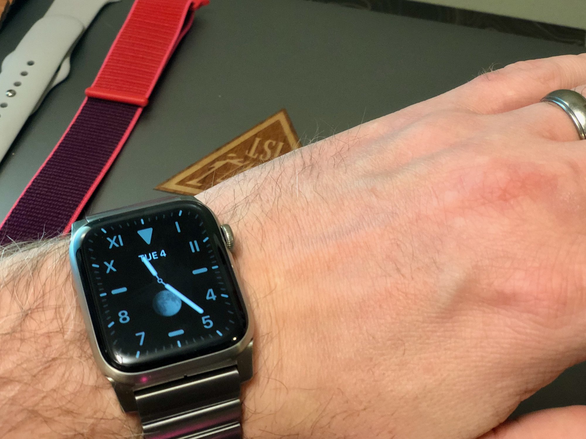 Just picked up the Royal Pulse/Lava Glow Nike Sport Loop. Looks really good with the Stainless Steel, I think it would look great with the Space Black as well. I saw videos and reviews that mentioned the colors get washed out a little in this particular color way and it is true they are pretty subtle but I actually like the understatement of this band. I also love the black borders. I’m happy with it.
