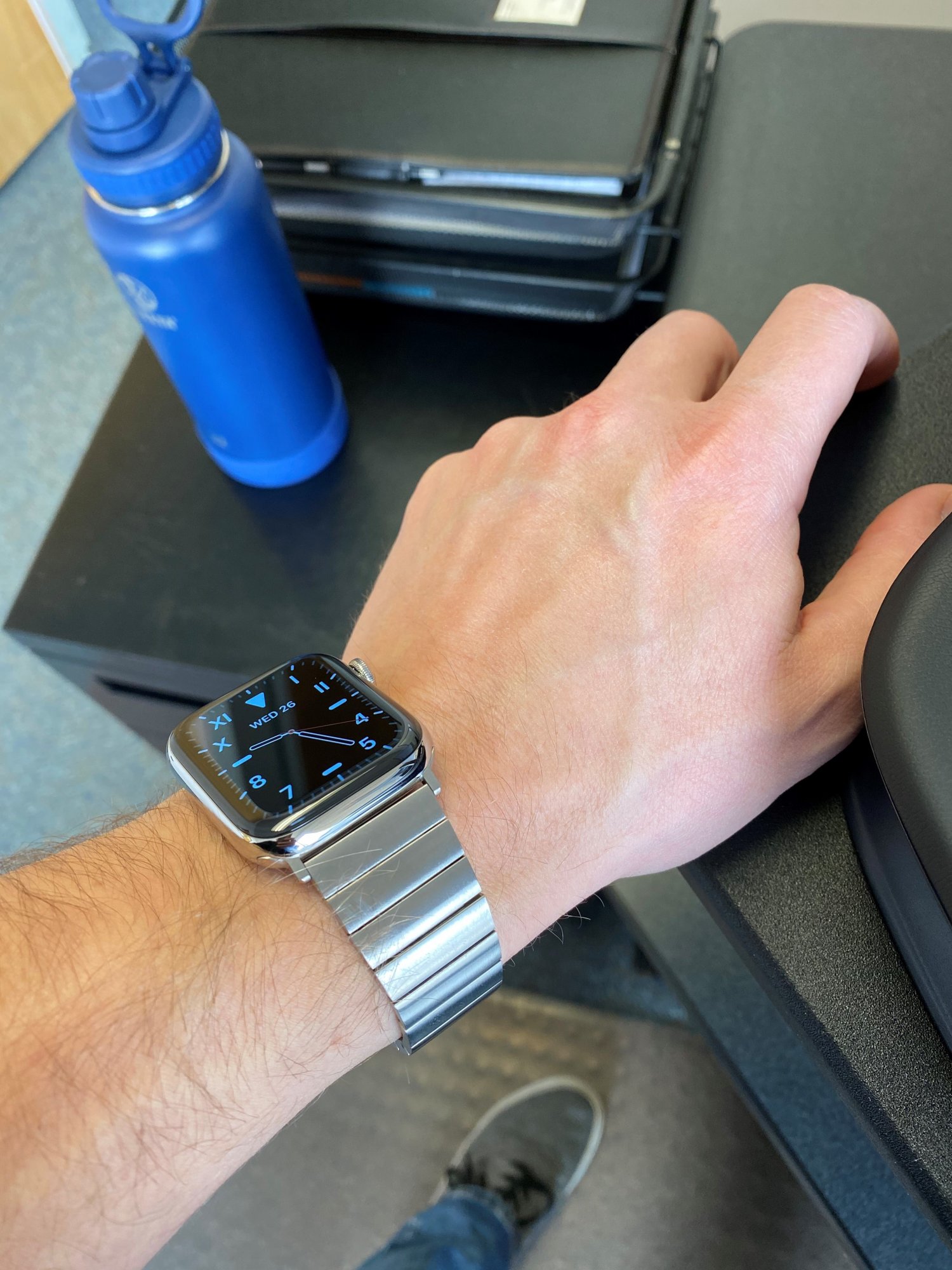 Finally getting back in the watch game with a Series 4 stainless with a Best Buy special link bracelet that I think looks pretty damn nice for what it cost.