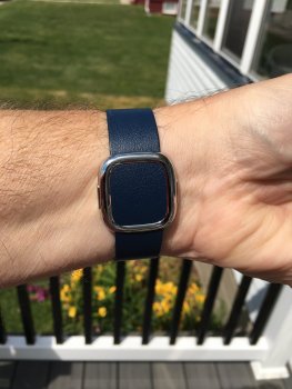 Looks great. Is that silver aluminum? The watch looks blueish, I guess reflecting the band a bit