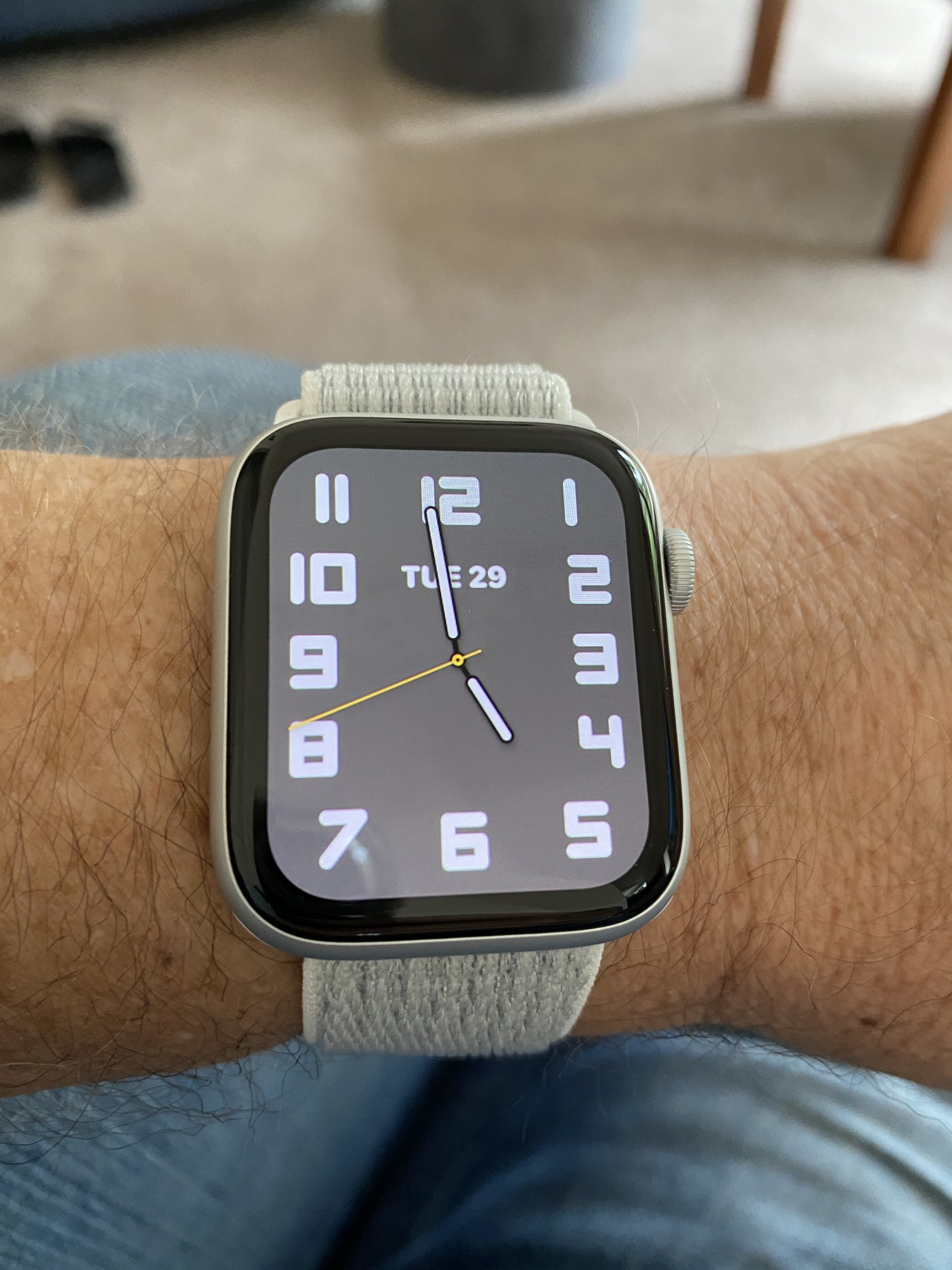 I can totally relate to that. Tried on my Atlantic Blue braided loop yesterday with the new S6 and it felt a tad loose! Temperatures have dropped since I last tried it. I'd have to try size 4 but it might be a bit too small since I'm supposedly between sizes 5 and 6.I was size 5 on the sizing tool and size 5 at the store try-on, but in certain circumstances (being cooler temperature/ and the weight of the SS watch) it becomes a little too loose with certain movements). I might have to go down to the smallest size they make for 44mm, the size 4. I off and on feel like I should’ve stayed with the 40mm (for wrist real estate reasons), but my collection says you’re stuck with the 44mm for a long time 😂