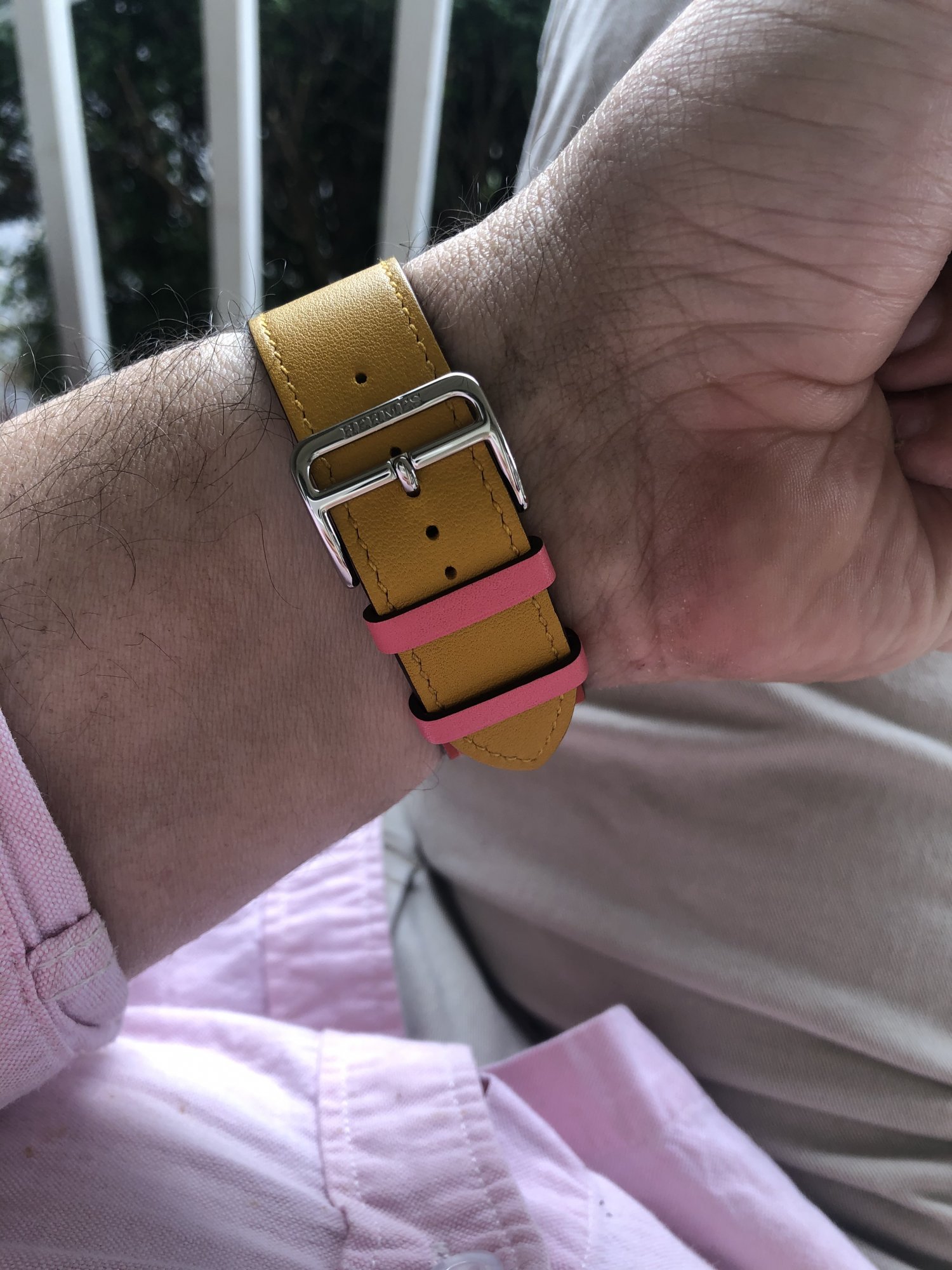 Here are a couple pics of my Cyprus. Not a standout band by any means but very wearable.Cyprus is the only new sport band color I want for sure. I just have to have all the greens for my gold ss s4. It seems like a way more interesting take on dark olive and cocoa. Holding out for a deal on a solo loop to avoid the silver pin and just because the solo loops are so fun and comfy and I already have so many sport bands.