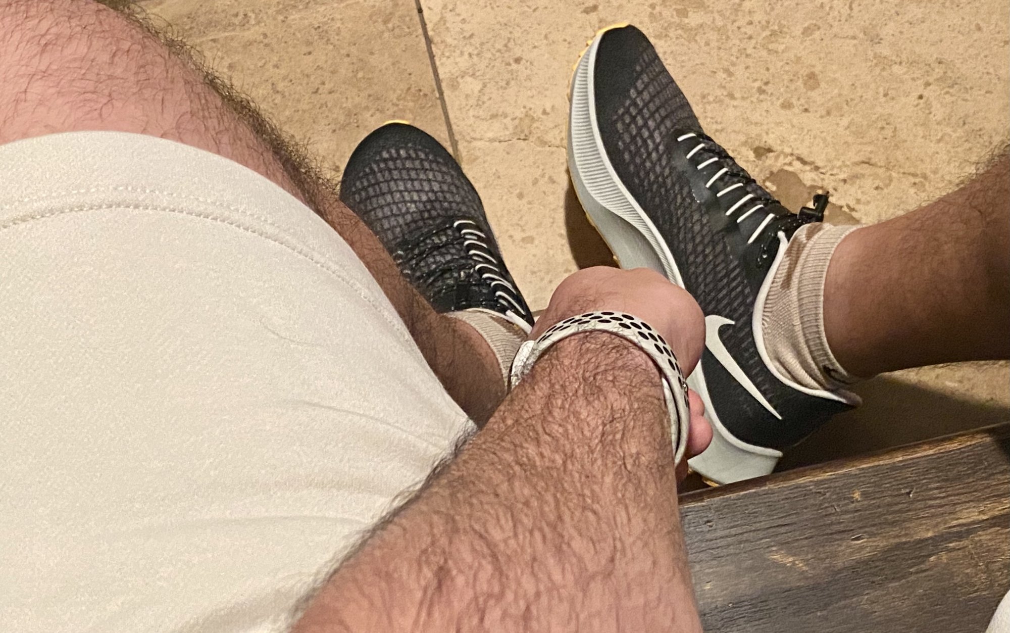 That is commitment, I am trying to resist taking anymore photos 😄My latest: Light Bone/Black band, light bone shorts, Stone socks (eh), Light Bone/Black shoes