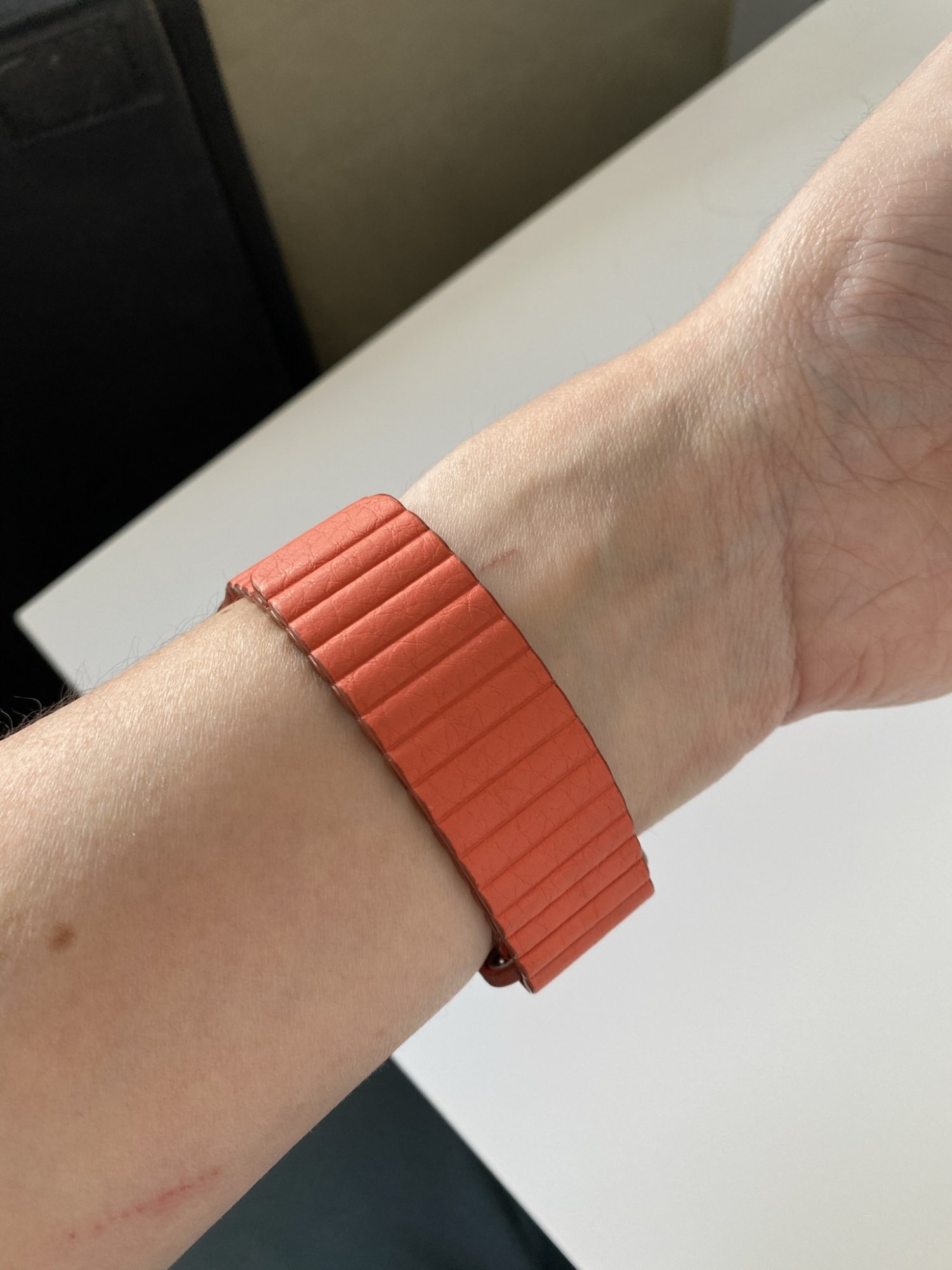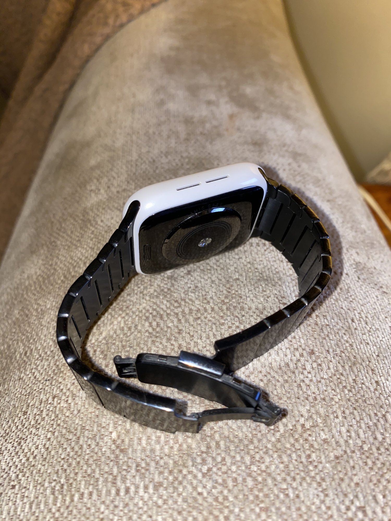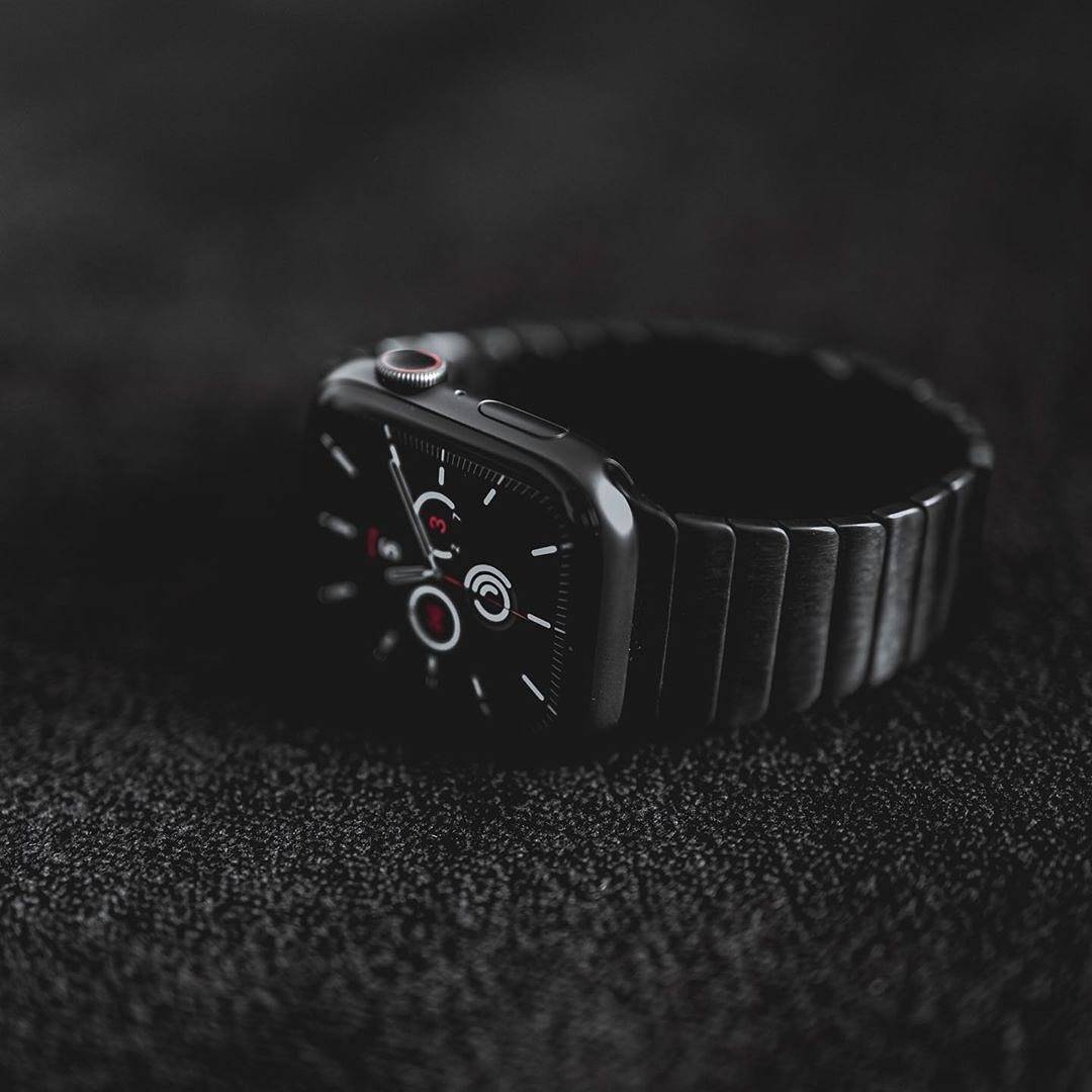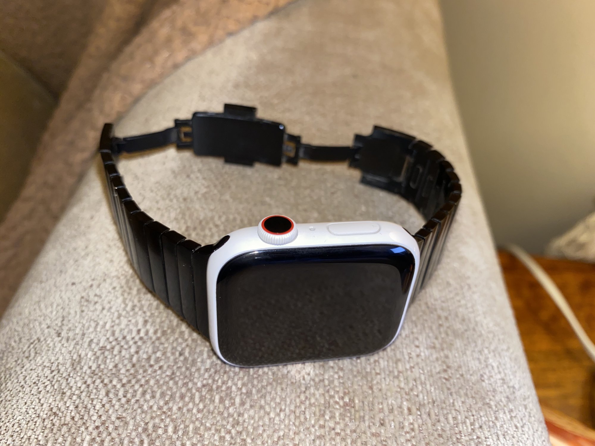 Today was a black Milanese band on black scrubs, blue California face on a blue watch.