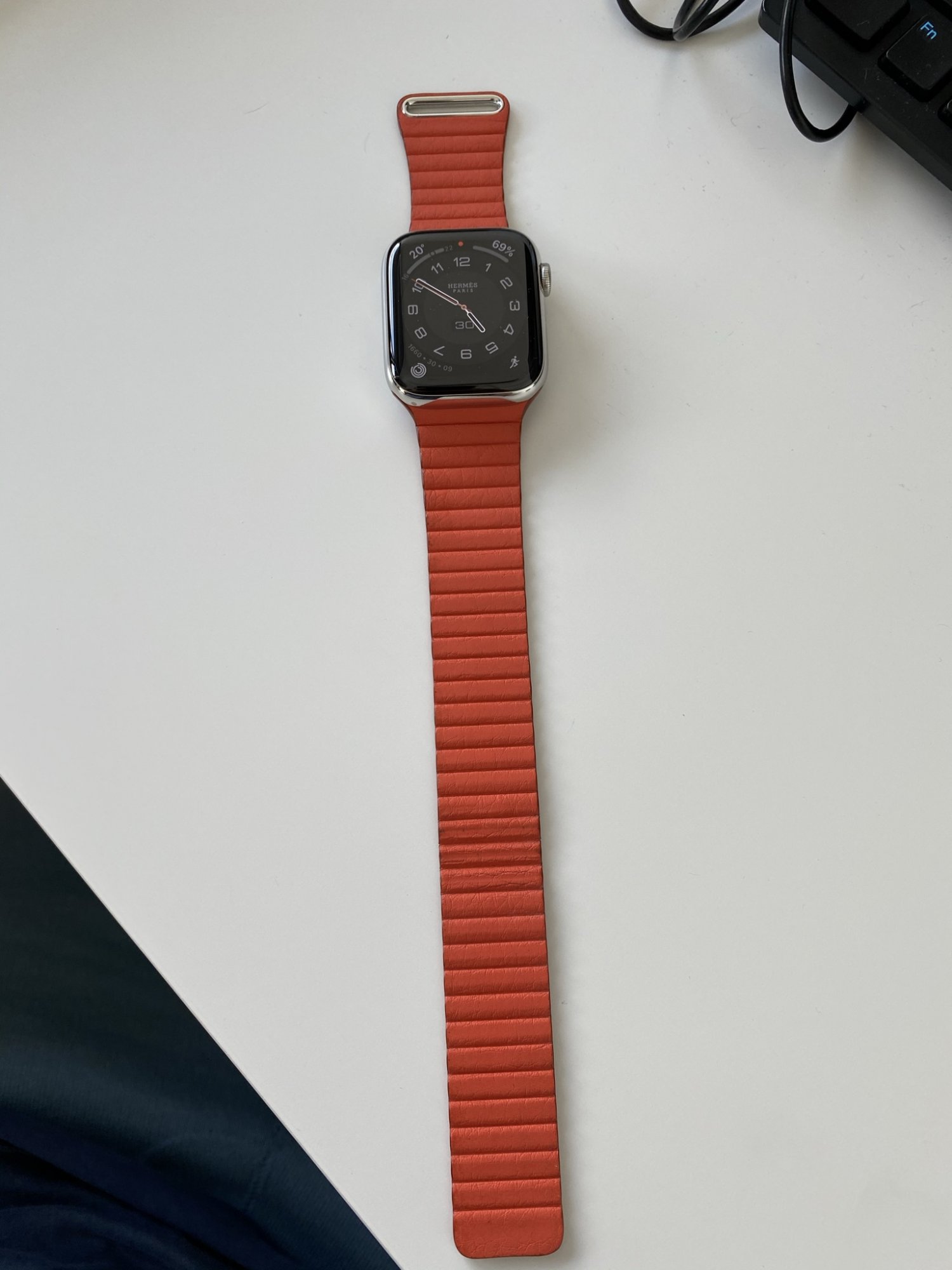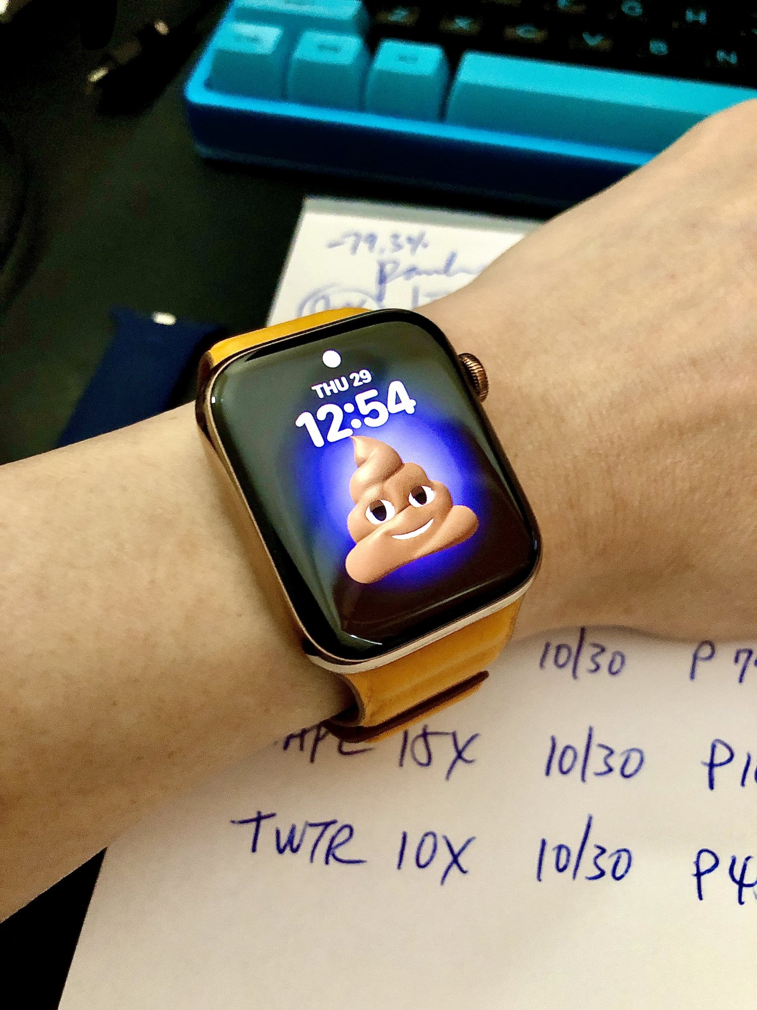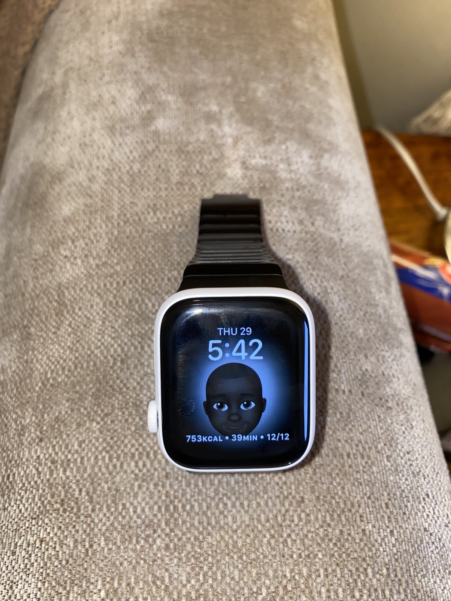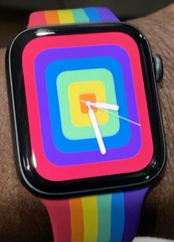 Today was a black Milanese band on black scrubs, blue California face on a blue watch.
