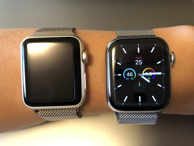 My old, dead gold Al Series 1 and my new silver SS Series 6.