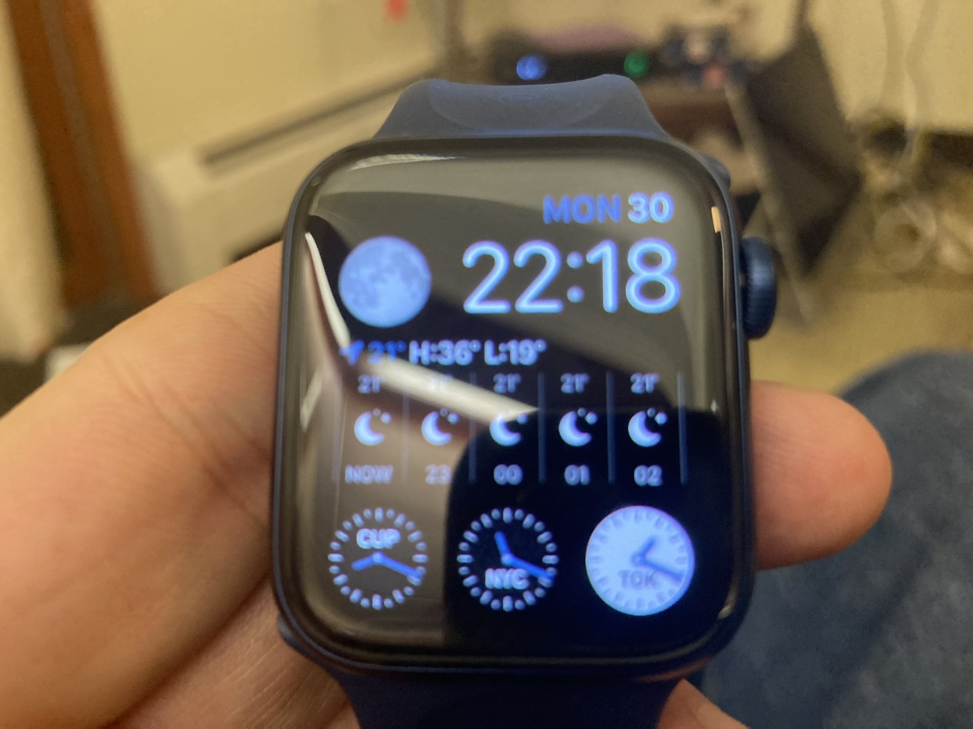 Your sport band is on inside out ;-)Apple Watch Series 6 GPS, 40mm Blue Aluminum Case with Deep Navy Sport Band - Regular