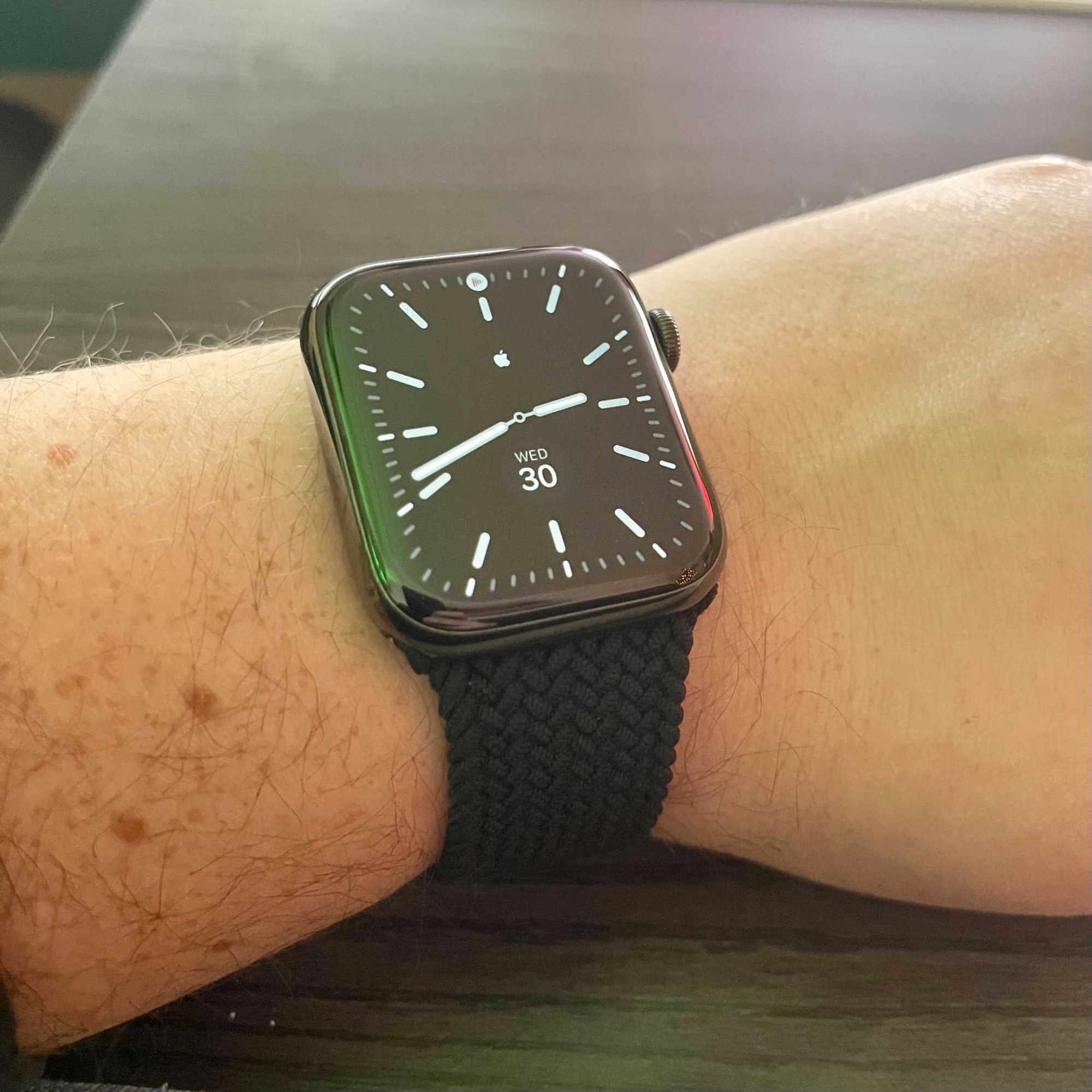 Here's an Apple Watch that isn't shiny and in brand-new condition... I bought this Series 5 (GPS, 40mm, Space Gray aluminum) almost exactly a year ago. I've gone through a dozen watchbands or so, but I'm currently using the Charcoal Sport Loop and I really like it. Regarding the horrible condition of the watch, I work retail so I'm ridiculously hard on this watch, and to make matters worse, I haven't really done anything to protect it. Rather surprisingly it hasn't broken or doesn't look worse. I do regret not putting on a screen protector of some sort when I first got it... That being said, I'll keep using it until it breaks. Then I'll weigh my options and either fix it (and protect the display) or upgrade.