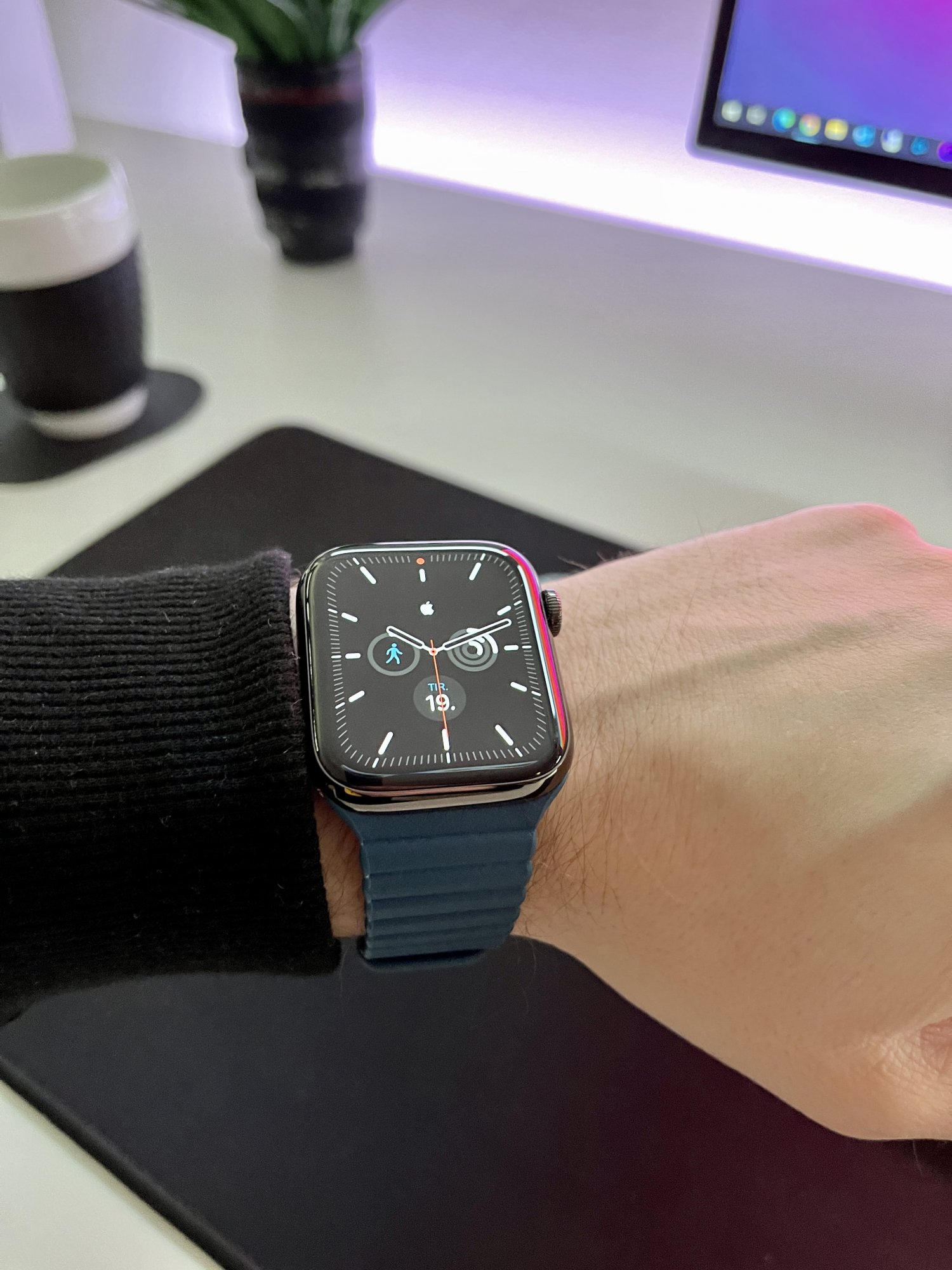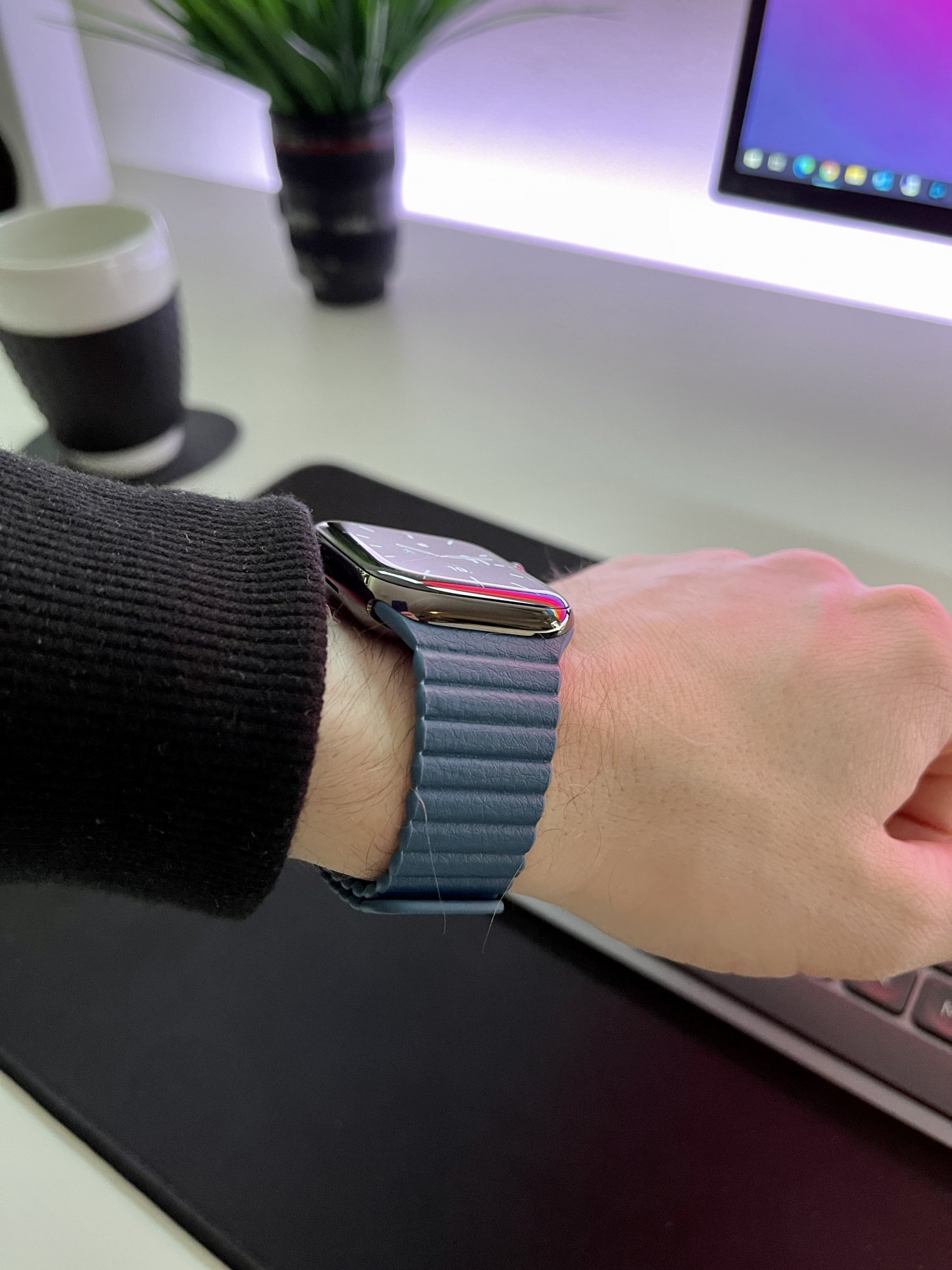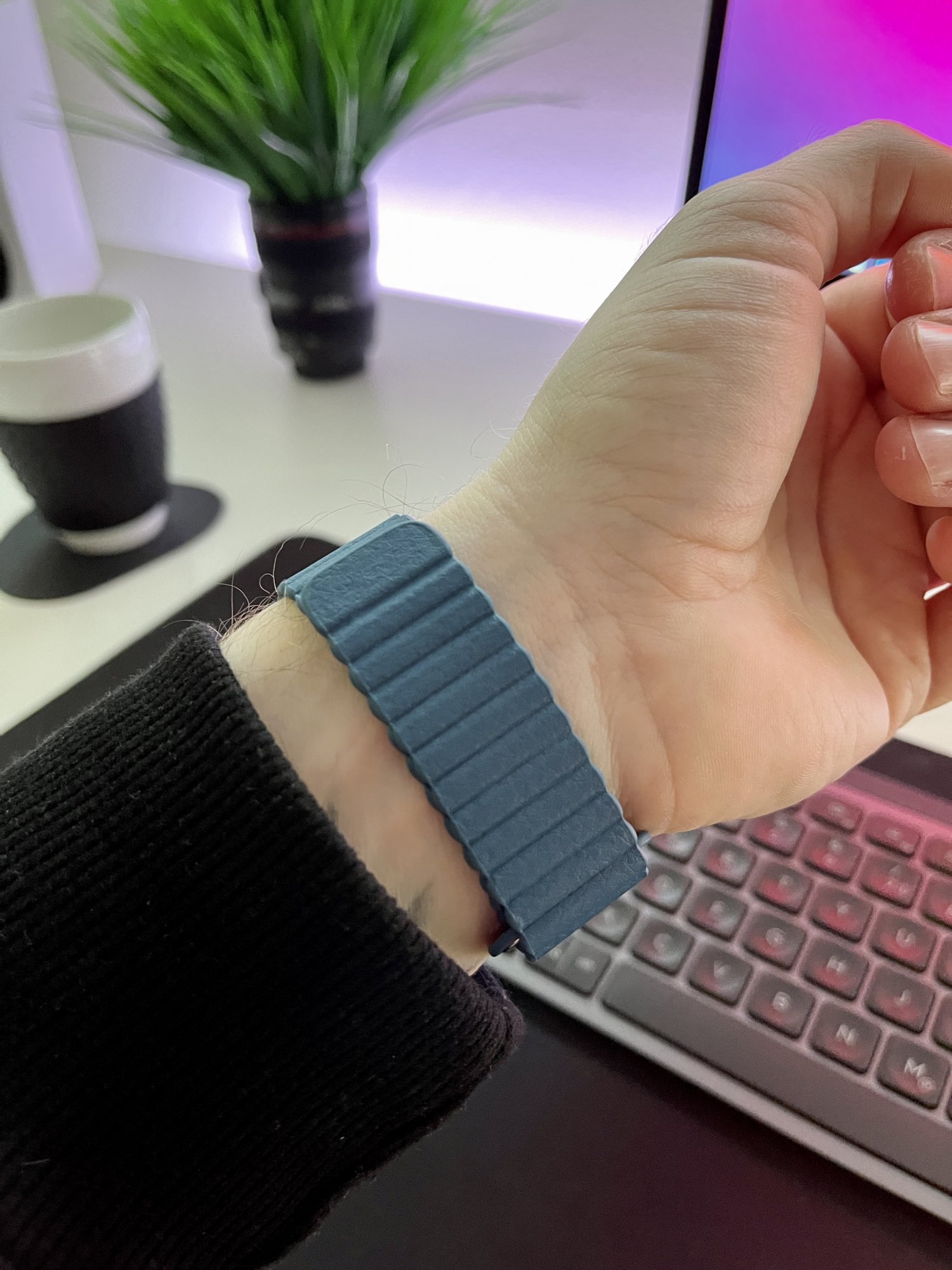 Looks like one of those “Watch by Apple for iPhone” knockoffs I would find being sold on the street corner for $50, with a $9 AliExpress band.Invested some of my Apple Cash in a new blue leather band from Barton Watch Straps.