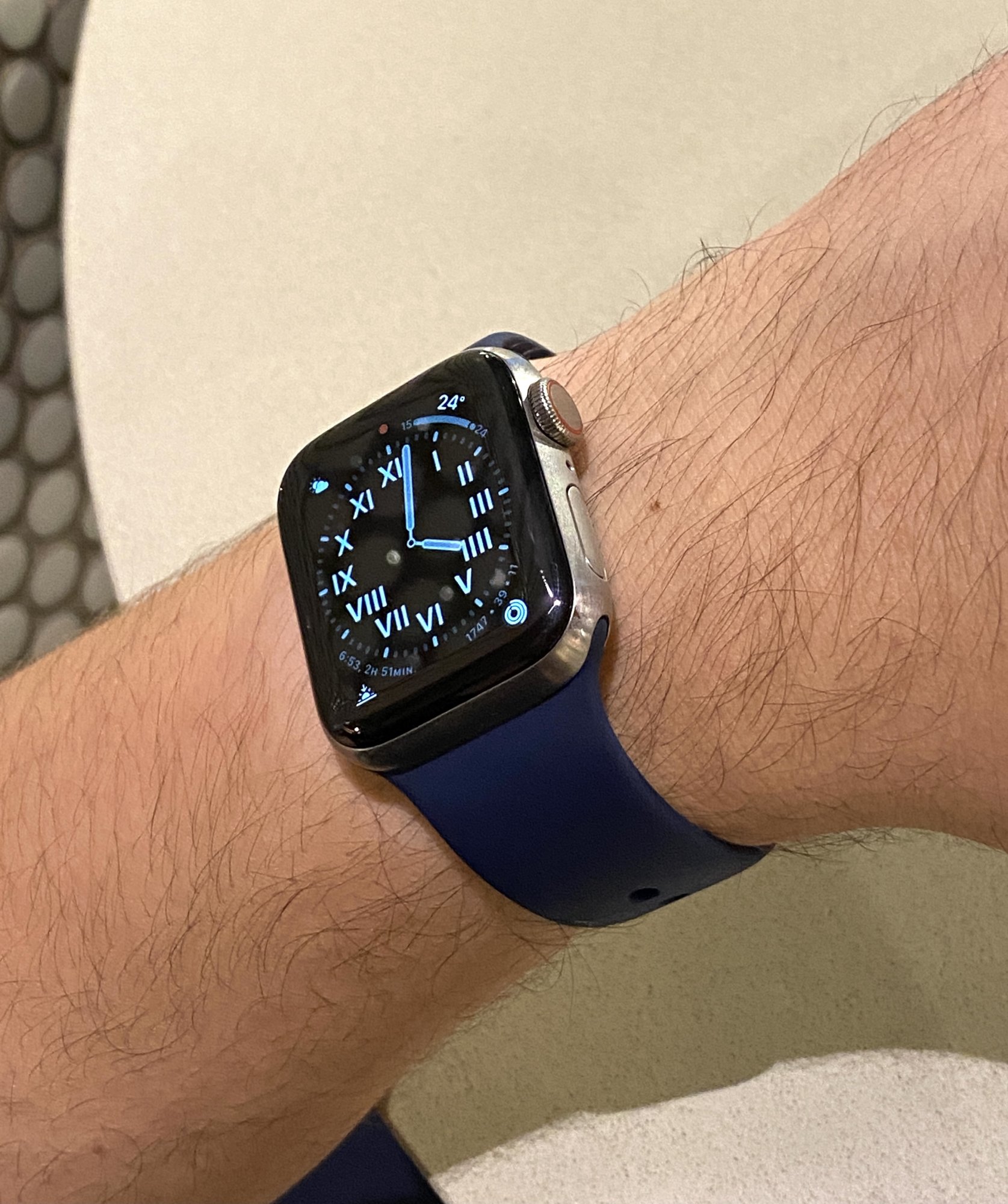 Pretty sure I spoke those exact words about this band combo very recently.Titanium with Deep Navy Sport Band. Lowkey and classy 👌🏻