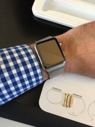 Received this last night. 42mm on a 138mm wrist...gal. I love the size of the screen, I can see it good. What do you all think? I know, I know, too big.