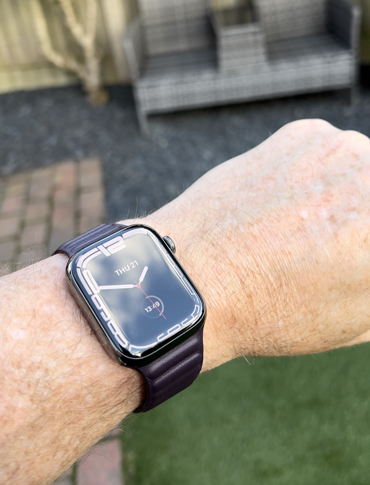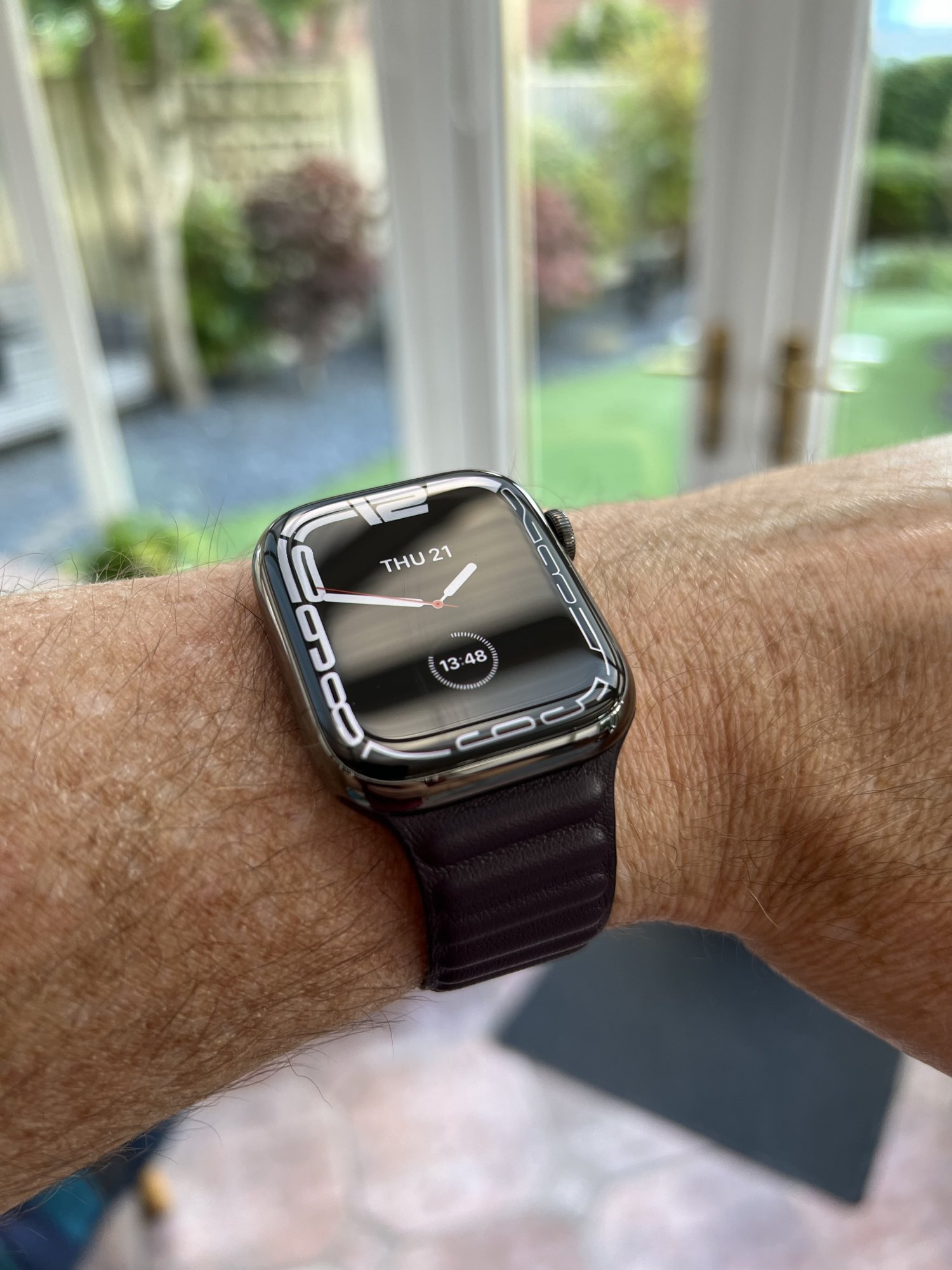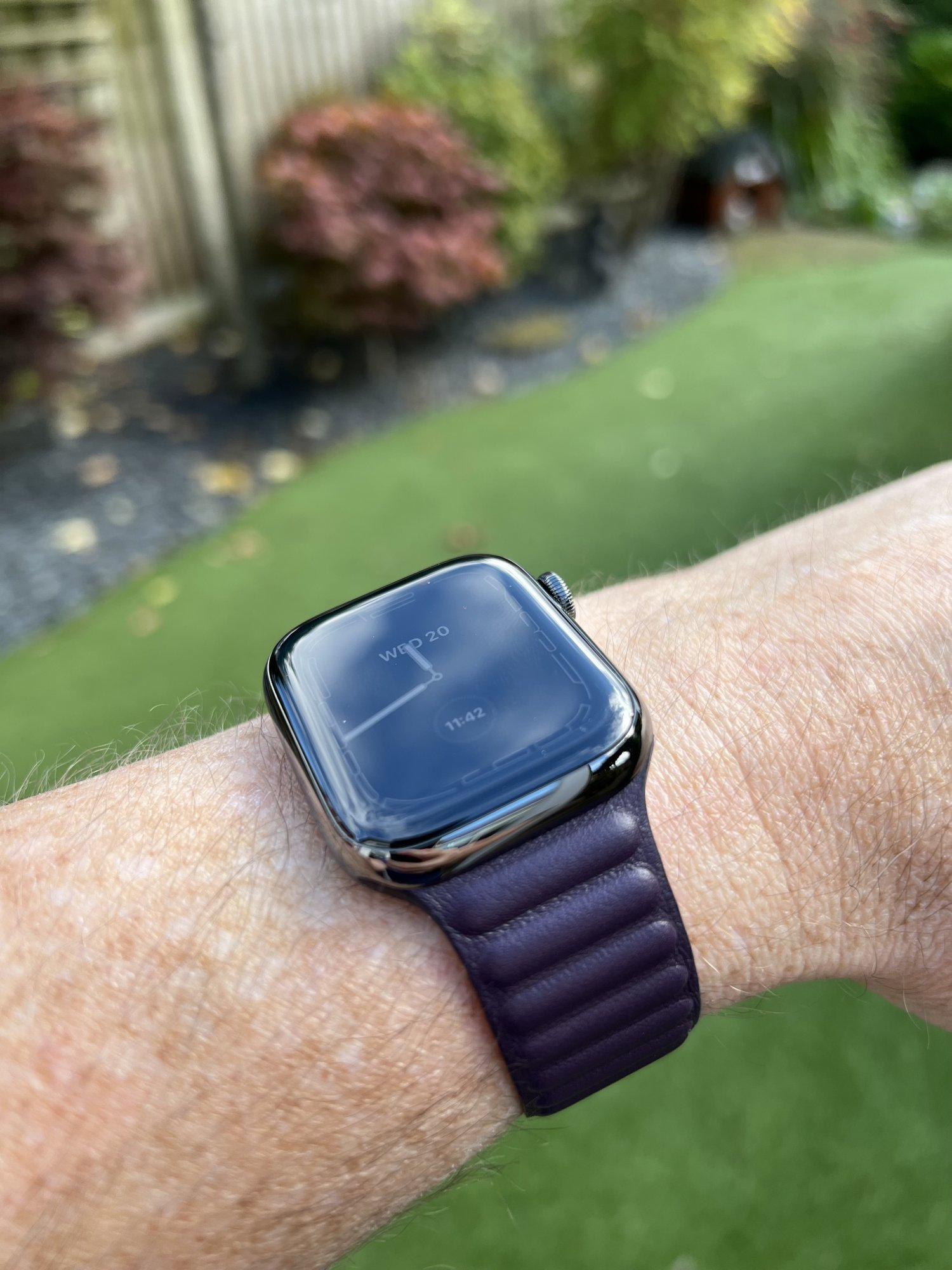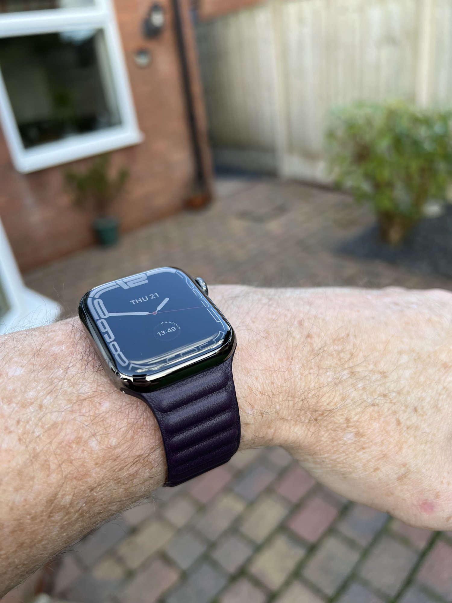 *Got to Get You Into My Life by The Beatles starts playing*Didn't know I could upload a vid so here's a little clip showing the S7 Graphite 45mm with Dark Cherry Leather Link and a few more pics.