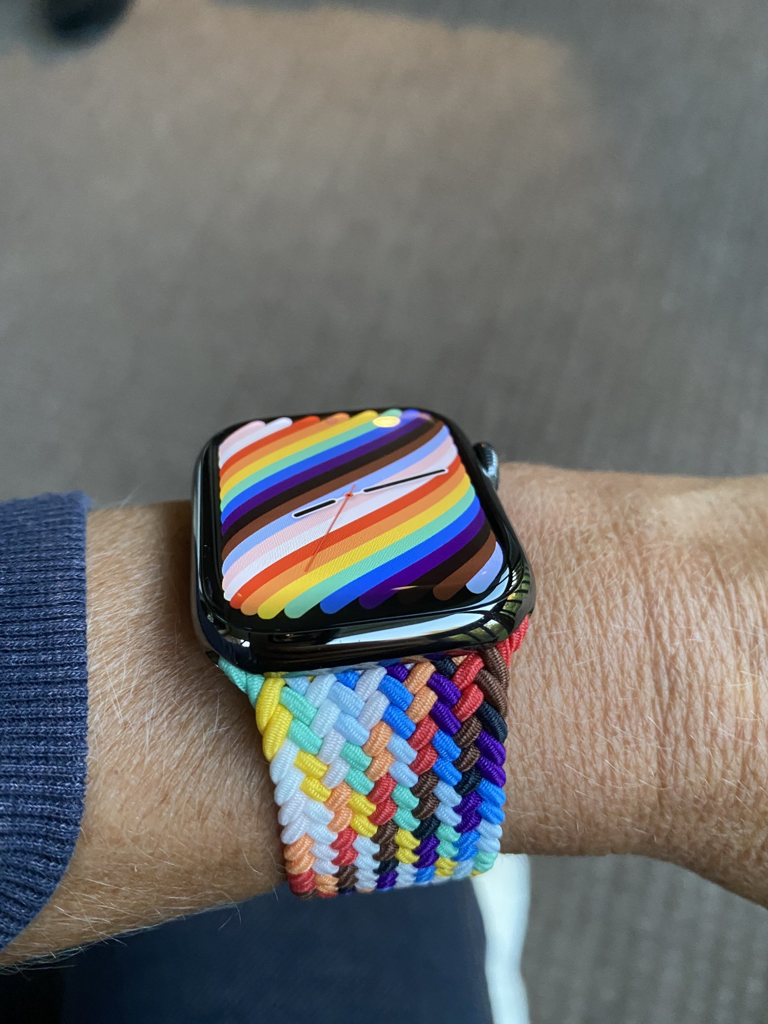 I went more than a little crazy with bands this time. I am obsessed with dressing up my favorite Apple watch of all time! I added eight new ones to my collection - braided solo in Abyss Blue & pride, Solo in dark cherry, leather link in chalk and midnight, and sport in red. I also just ordered the Nike pride sport from Best Buy (I have issues). This one is my favorite (today at least)!View attachment 1875543
