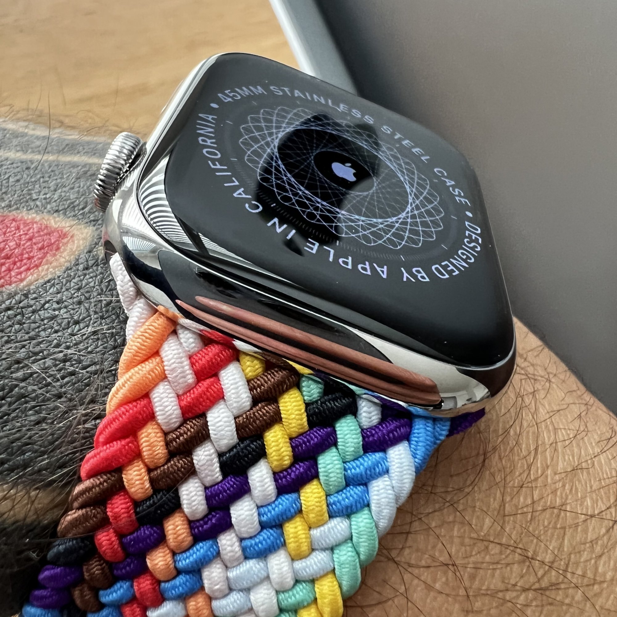I went more than a little crazy with bands this time. I am obsessed with dressing up my favorite Apple watch of all time! I added eight new ones to my collection - braided solo in Abyss Blue & pride, Solo in dark cherry, leather link in chalk and midnight, and sport in red. I also just ordered the Nike pride sport from Best Buy (I have issues). This one is my favorite (today at least)!View attachment 1875543